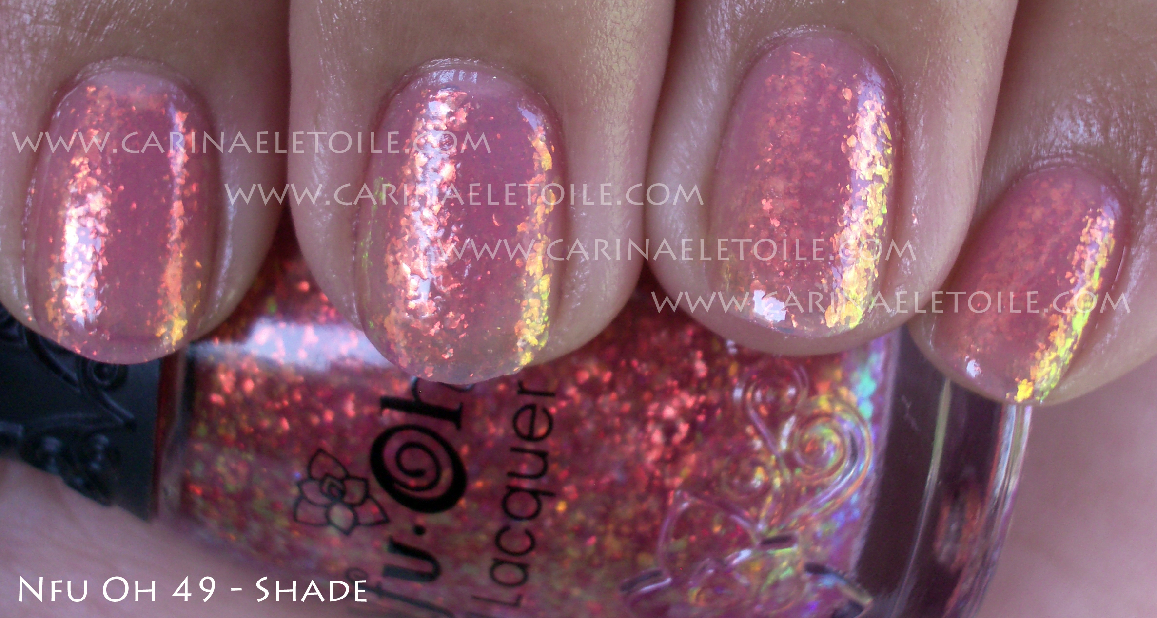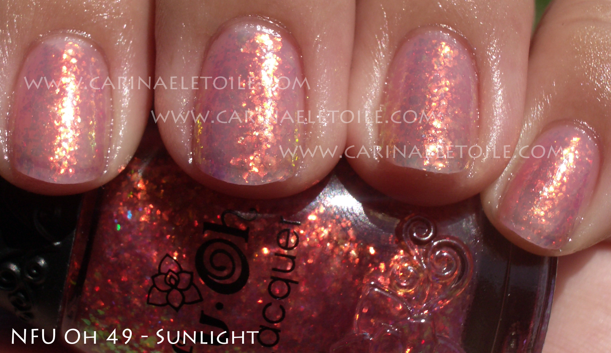 It’s a faint peach base with thick salmon colored glitter…gorgeous. While you can wear it alone, it is definitely meant to be worn over dark colors. I wore it alone. Eventually I’ll put it over a dark color so you can see.