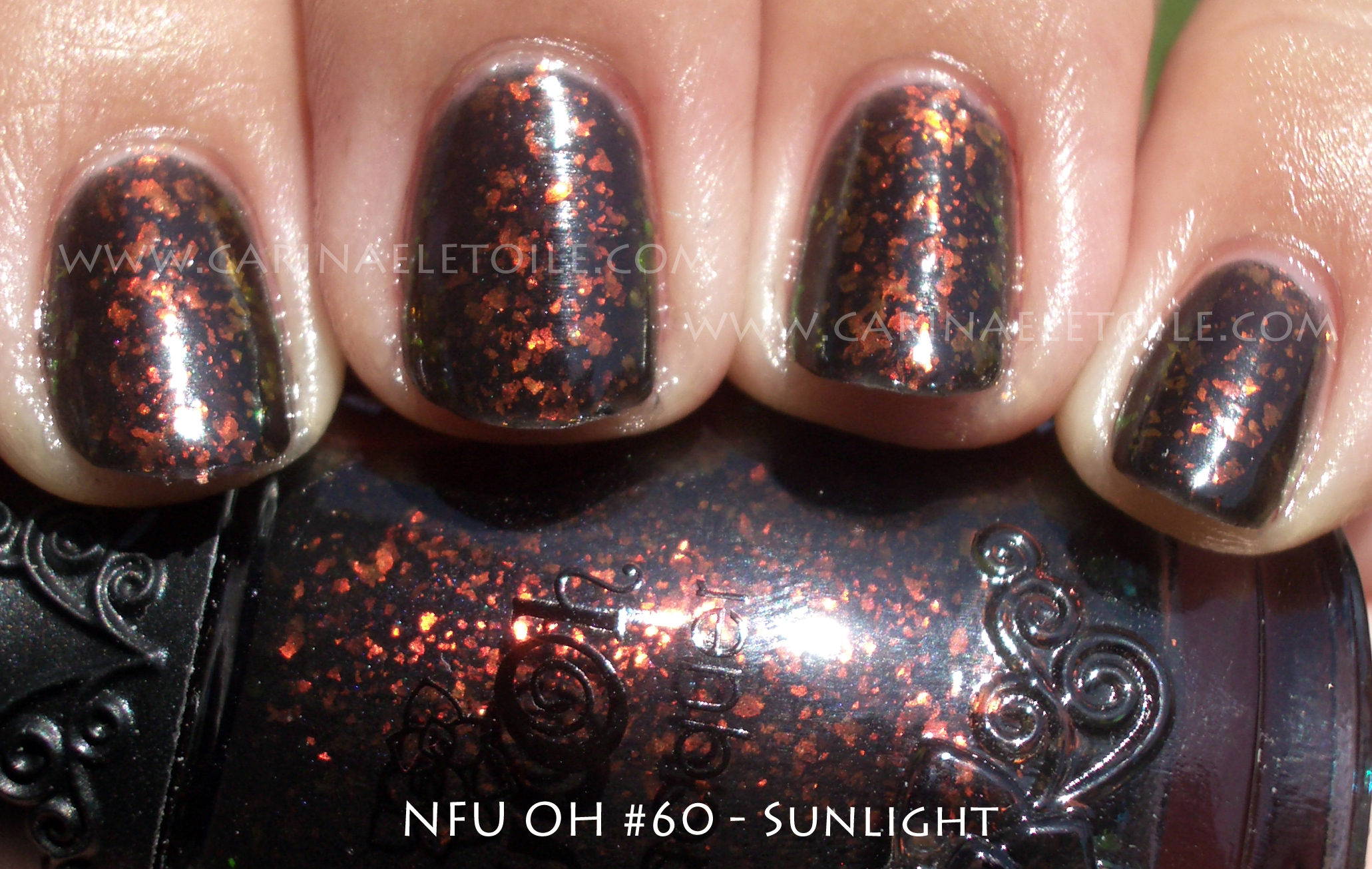 While you can’t see it, there is some wonderful green, blue, gold and orange play in the glitter. You can see the green and blue at the base of the bottle in the shade shot. Then on my nails in the picture above, you see the gold and orange come into play.