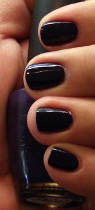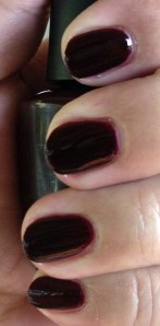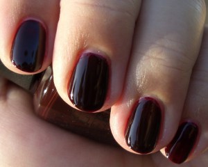 Ok, this…this…where do I even begin? I must wax lyrical! First coat impression: “I’ve seen this before. I loved it. I know…Chanel’s original Vamp.†I’m not talking about that crap Vamp that’s out now. I’m talking old school, circa 1994/1995 Vamp. The good stuff. I loved that color so much that I wore it till the bottle ran out…and bought another one…and used that up, too! I almost cried when I threw out the bottles, but I have here my new, much more affordable version — even though I only have one bottle. Oh dear.