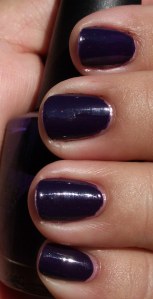I said that I was never a fan of purple nail polish, but this is such a deep dark royal purple that I fell for it. Hard. When in light, you can see the purple shine through. Absolutely beautiful, even if the formula is a bit temperamental. I found that to be true of the Spanish Collection as well. Those colors would’ve benefited from a three coat application and the same applies for the 2009 Holiday colors. In direct sunlight…there is that gorgeous, dark royal purple coming into play. How can you not fall for a pretty purple?!