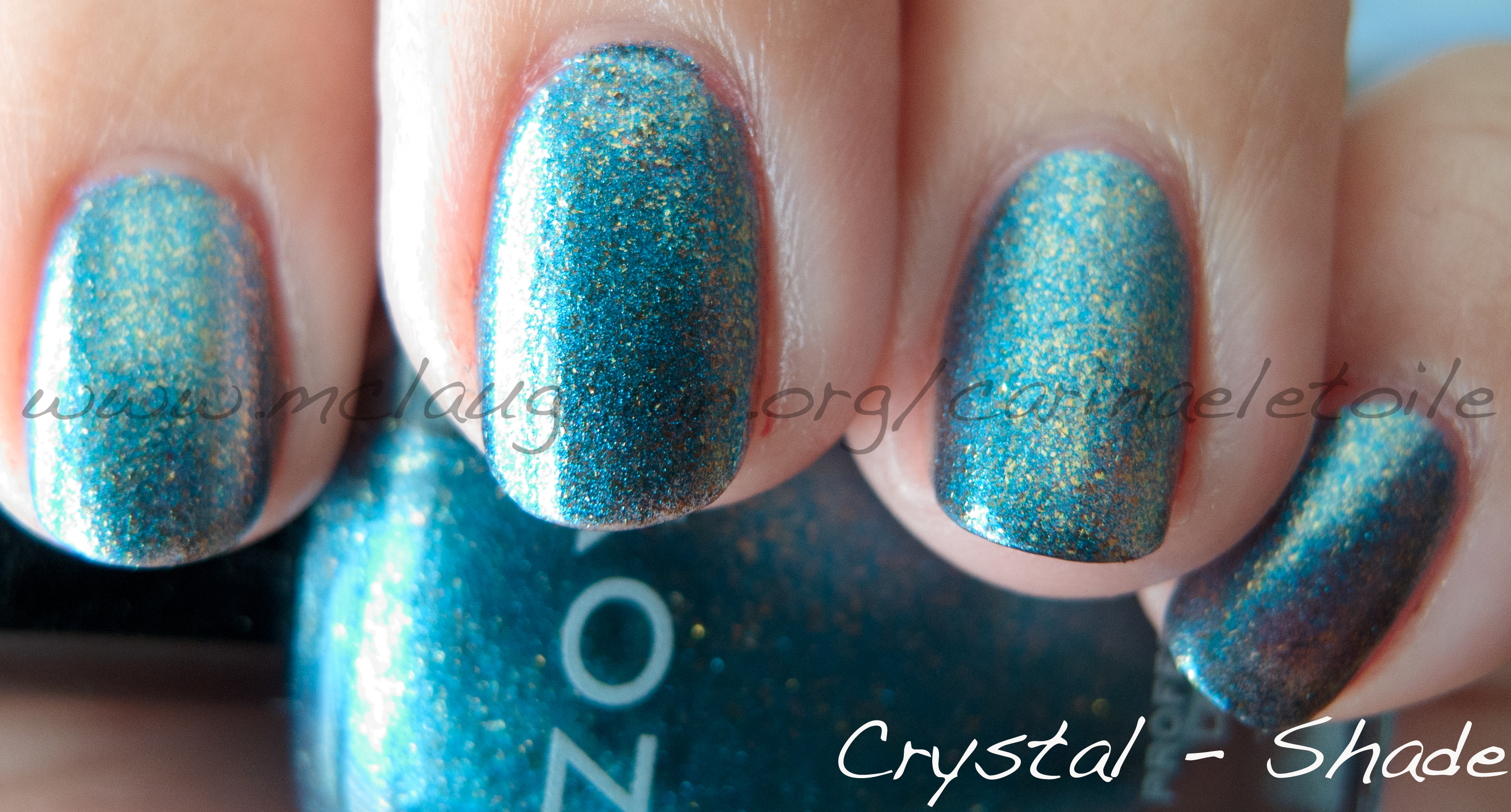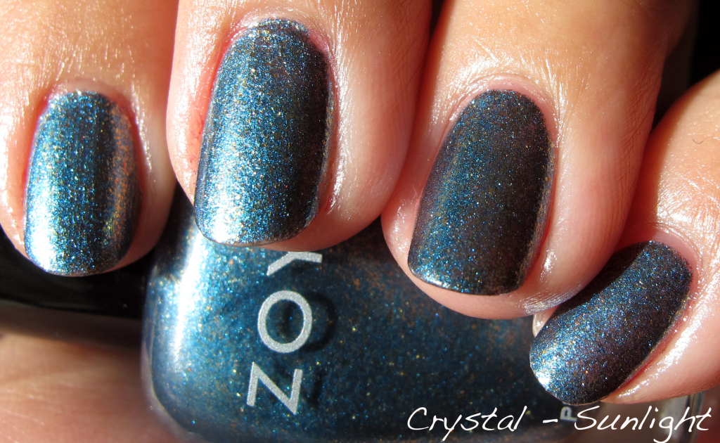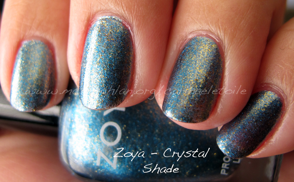 Two different shade shots of Zoya Crystal to show you the gold flecks and the shimmery metallic goodness of blue.