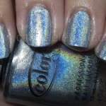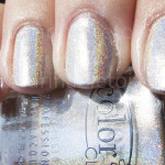 Early morning sunlight isn’t as strong as it could be to bring out the flash and shimmer of the holographic. Sadly, my swatching of holographics this week has been cut short thanks to the rain. BOOO.