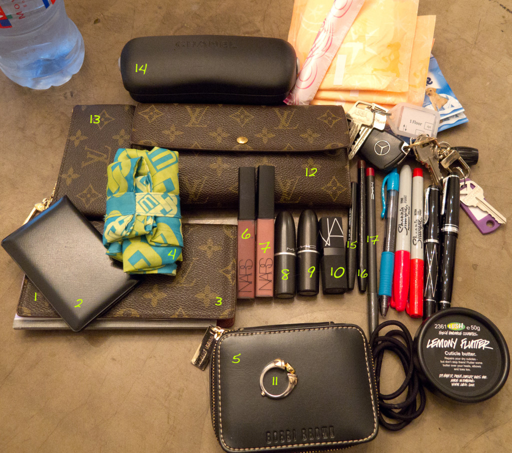 The other things? I think they’re self-explantory! Feminine hygiene products…notice the red Sharpies? It’s for when I feel like editing some menus when I go out to eat and I find typos. Yea, that’s how I roll. I still have my housekeys from California as well as the car key to a car that isn’t here. I know, I know.