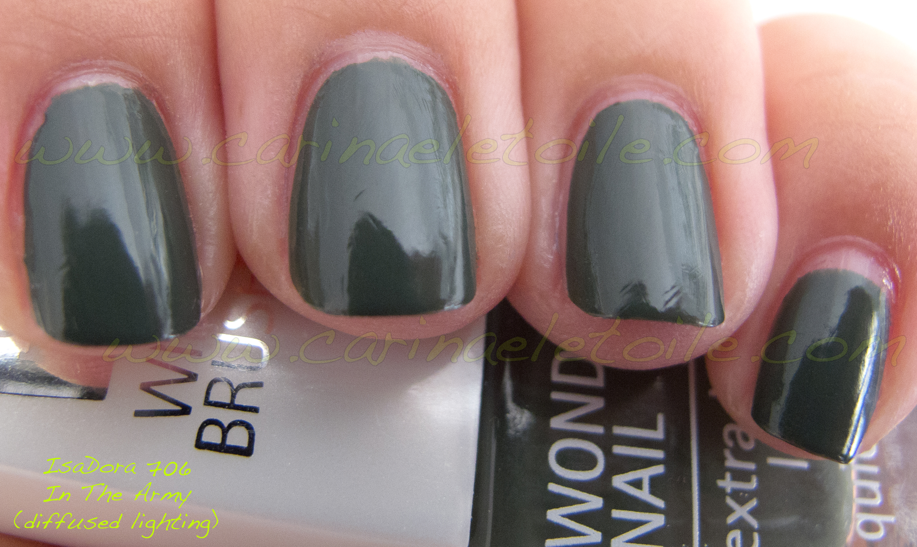Anyway, IsaDora 706 In The Army is this gorgeous dusky, deep dark grey green. It’s military. It’s gorgeous. It’s a lovely creme – I do love cremes when they look and apply like this.