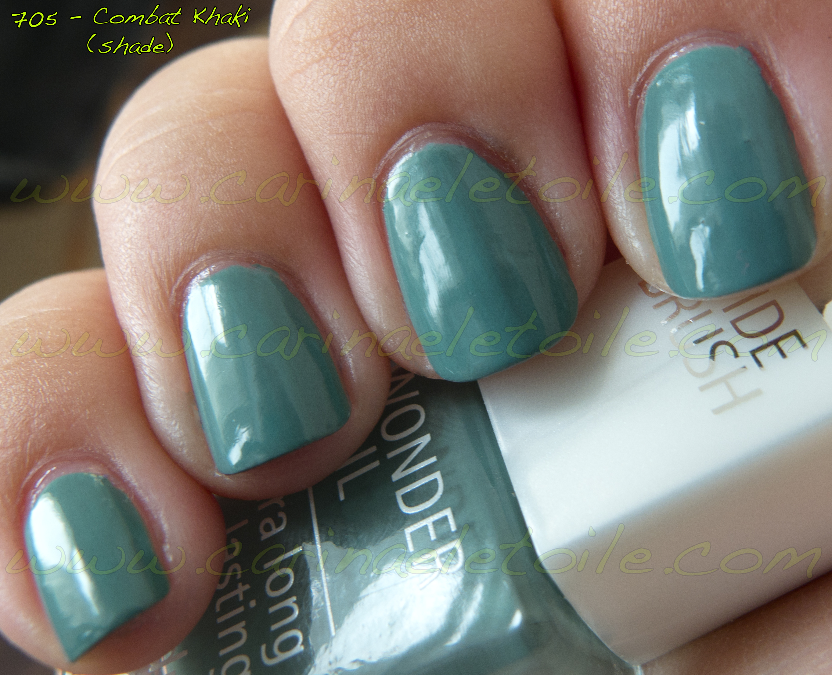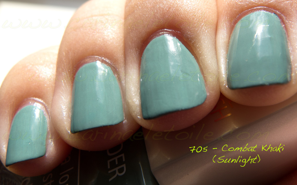 I have to say, I was surprised that IsaDora 705 Combat Khaki looked halfway decent on me. Normally when shades like this come out, it looks like someone has stripped all the personality out of the color when I wear it. There is something about my skin tone that takes the prettiest of hues and tones, then just demolishes them so they resemble nothing, NOTHING like the color in the bottle.