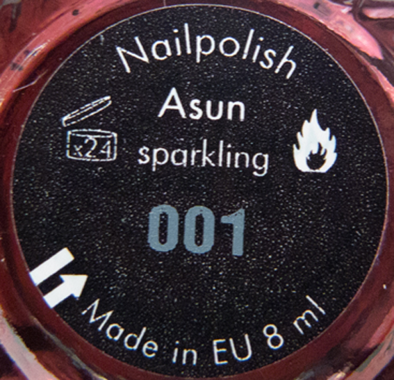 Asun is an extremely light pink/red tinted coat with gorgeous pink and silver glitter throughout. What does it look like?