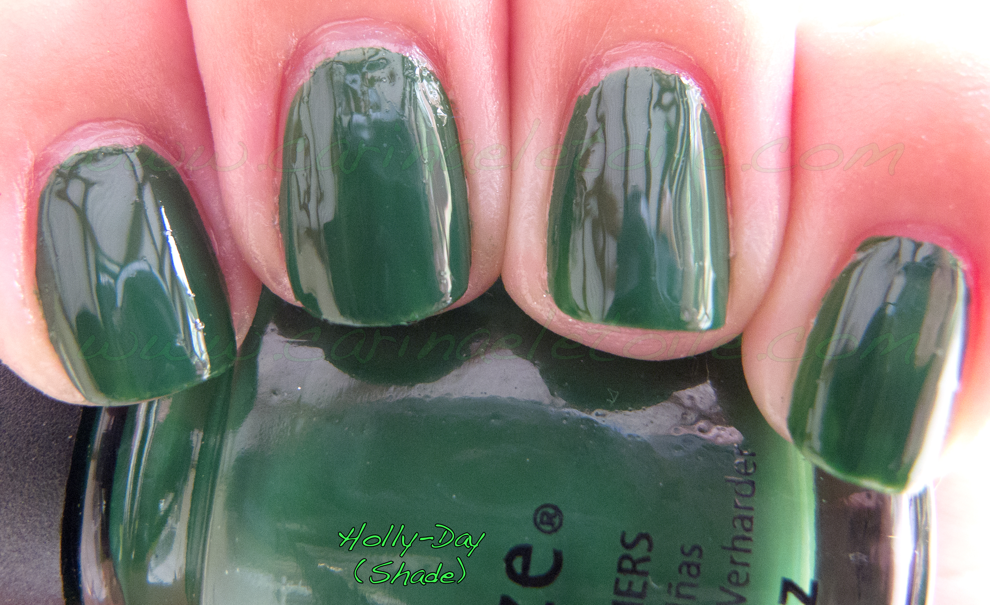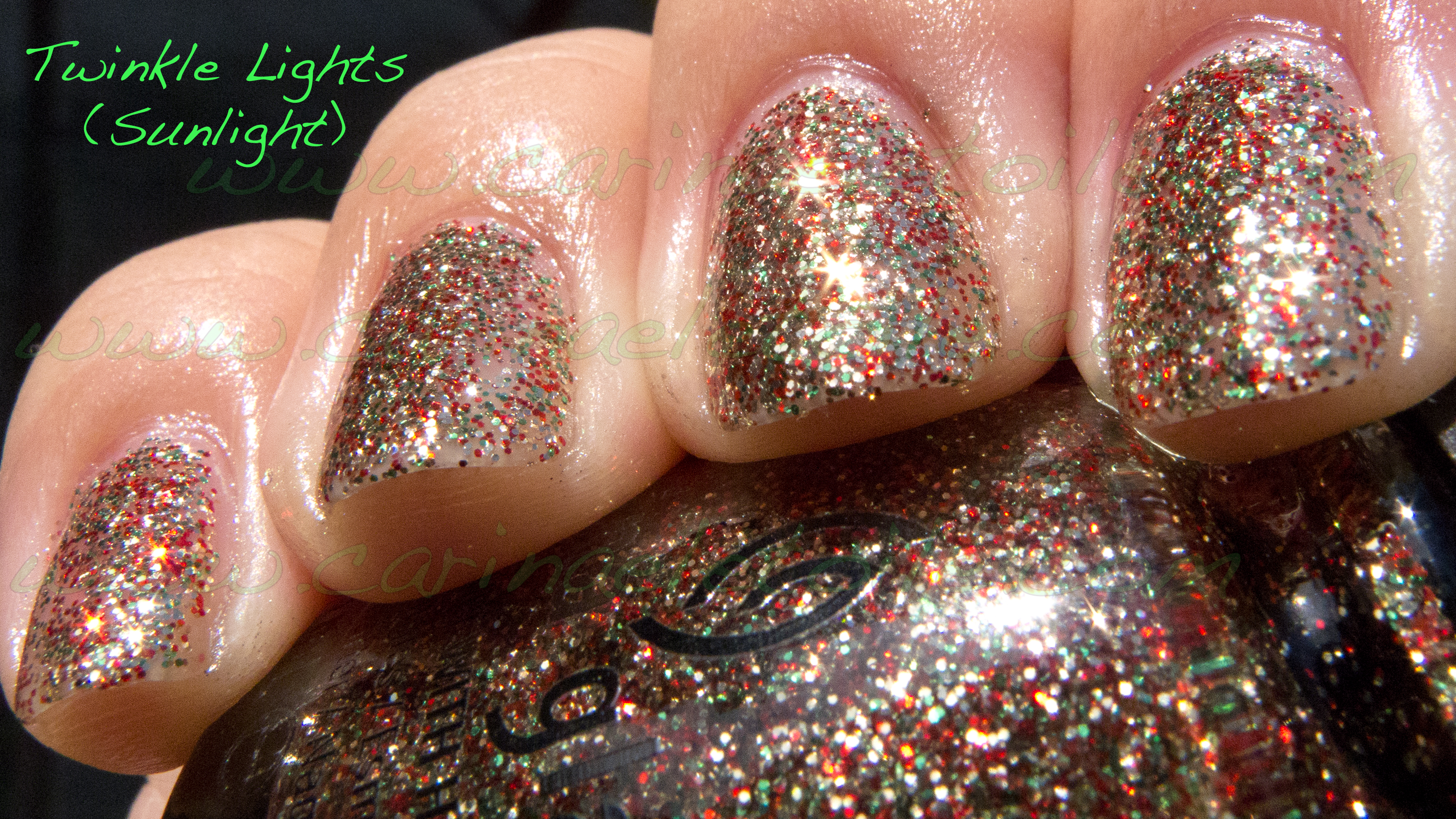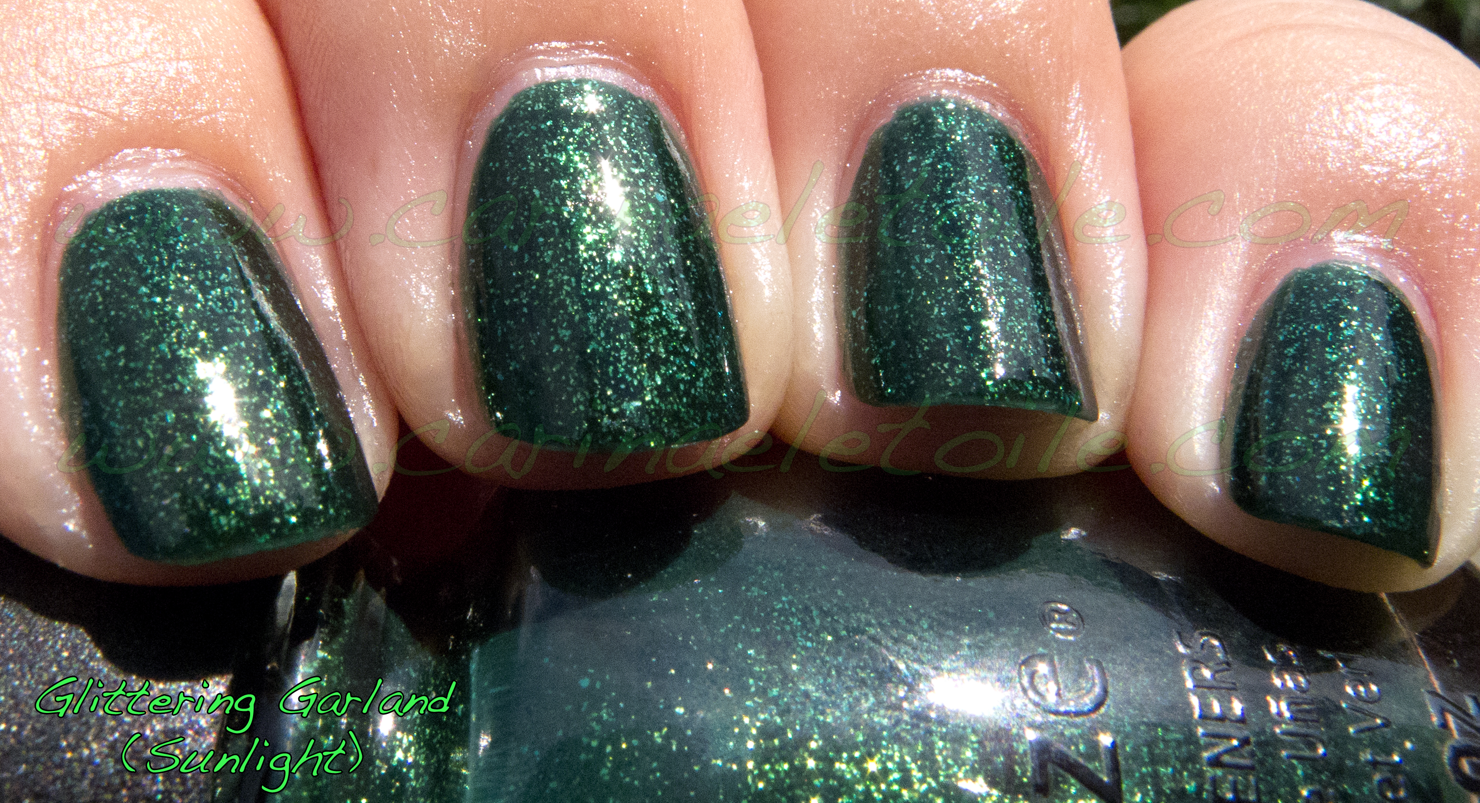 Glittering Garland is this pretty color that, for a brief moment, had me totally dying. Then I went, “Hey…have I seen this before?” I have. Below you will see a shot from last year, comparing Orly’s Meet Me Under The Mistletoe, Zoya’s Ivanka and China Glaze’s Mistletoe Kisses. I will have to do a side by side comparison of Orly’s Meet Me Under The Mistletoe and China Glaze’s Glittering Garland. For now, you will have to settle for a shot from last year.