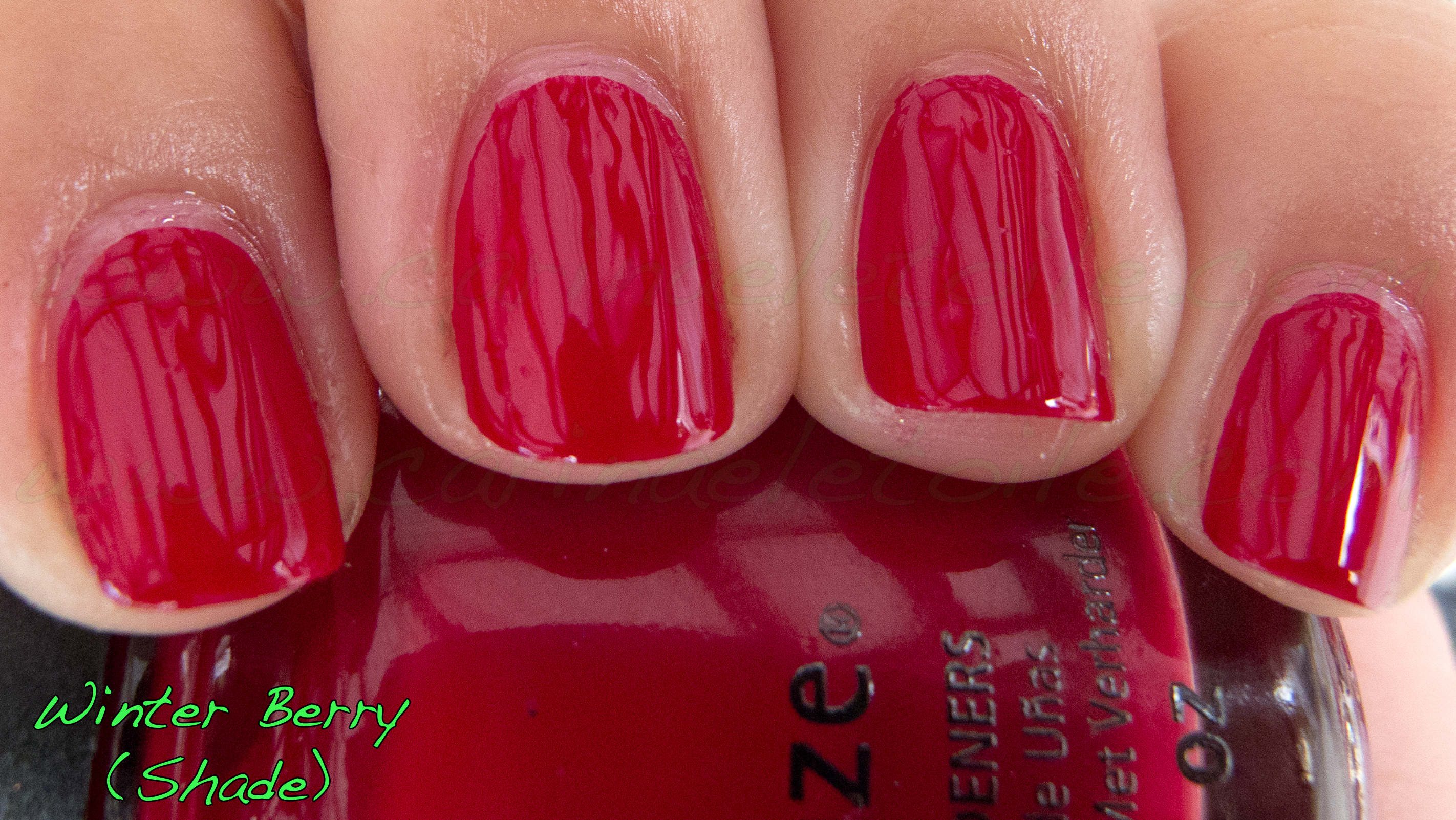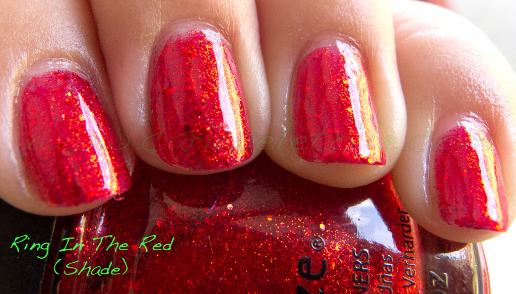 This is a wonderful shade of red. It’s super bright and shiny. I have to admit, this has me smitten!