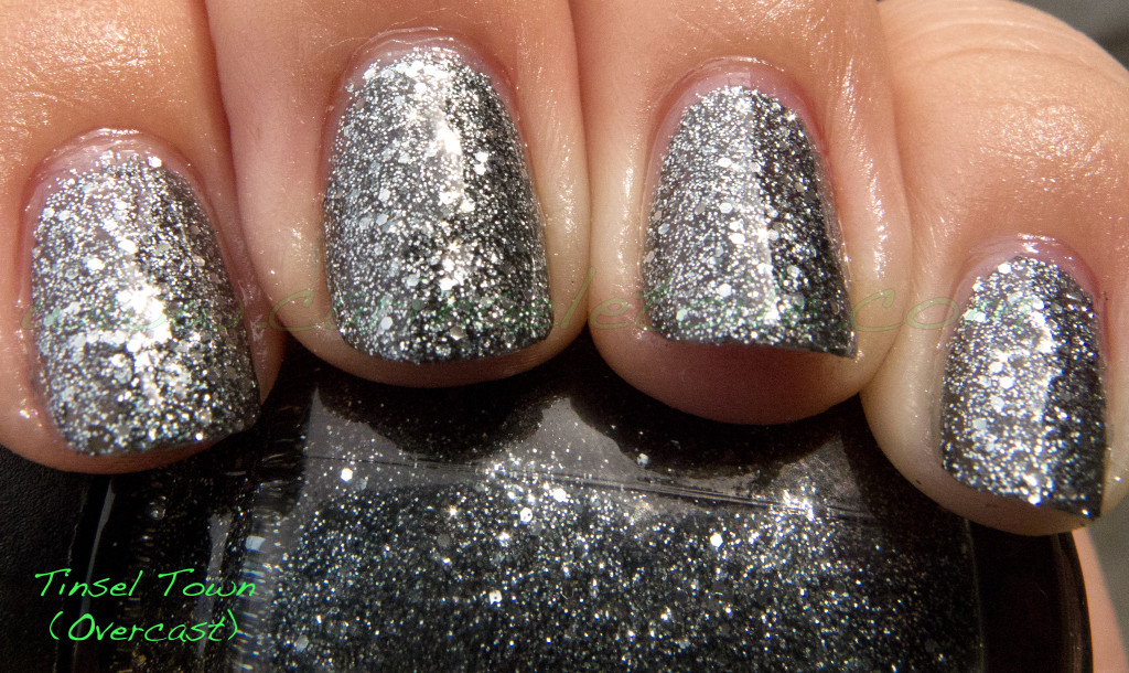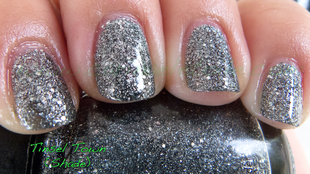 This was a total surprise for me…Tinsel Town really was so not part of what I was expecting for this collection. That’s a really good thing. I love that this has a light charcoal grey base and then totally explodes with different shaped silver glitters. Click and see this super cool glitter polish up close.