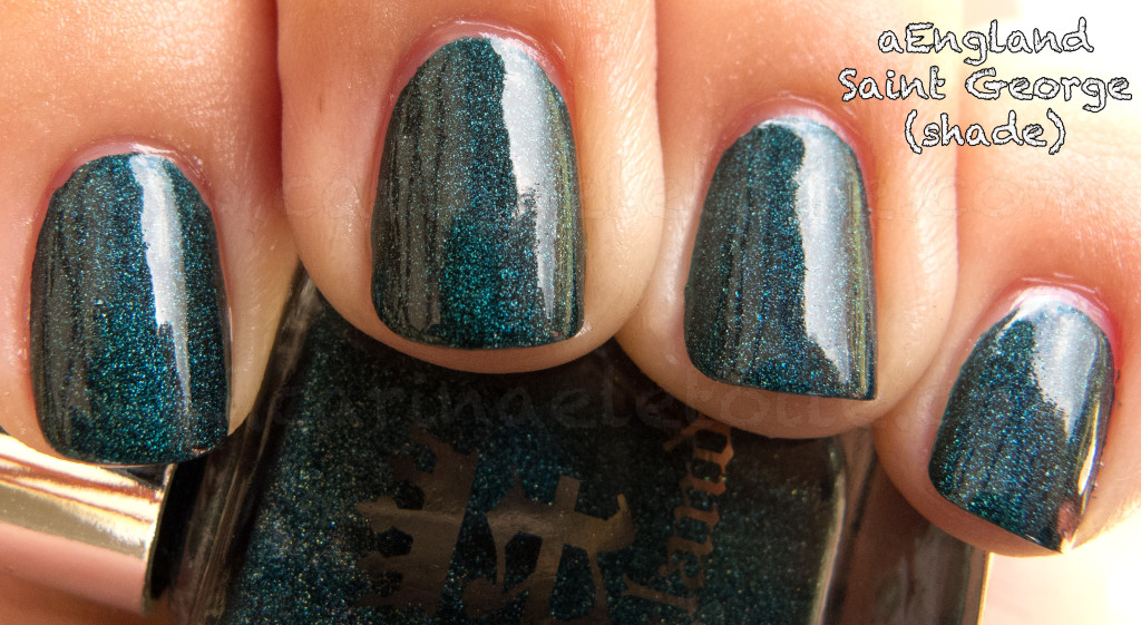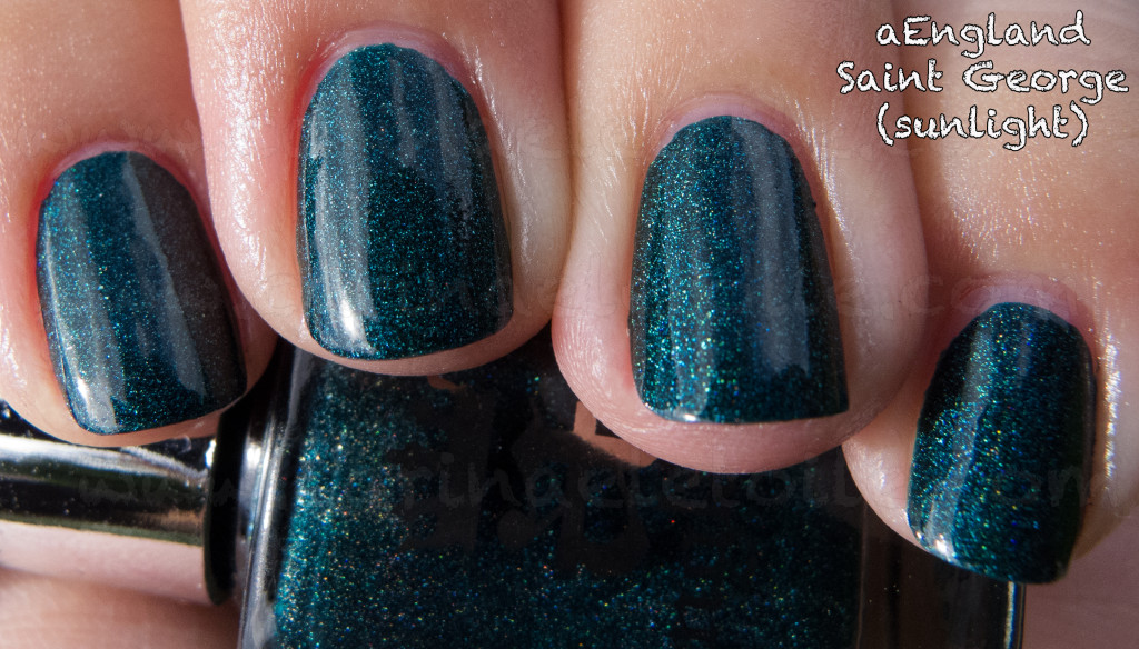 My first impression was that the holographic on this wasn’t strong at all in either shade or sunlight, which was a disappointment because it was subtle. So subtle that the camera could barely capture it. I was so hoping that it would be strong and linear, making people go, “ohhh…ahh….oh! What color is that? It’s fabulous!!!” It’s still gorgeous, but subtle. So while I was disappointed in the lack of holographic, I was blown away by the fact it is a teal holographic. I haven’t really been a big fan of teal before because I thought it didn’t look good on me, but I’ve found that isn’t necessarily true. Come and have a look!