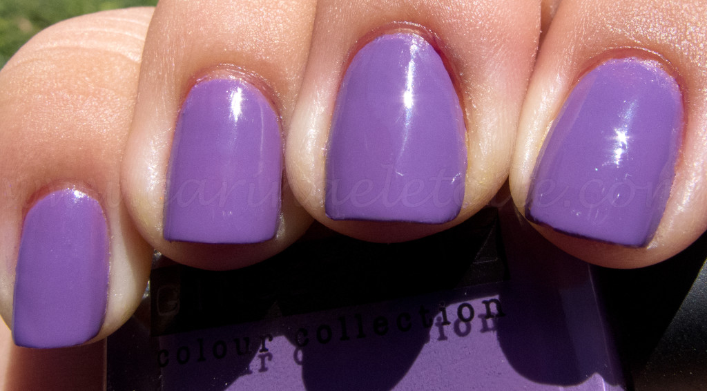 Ginger and Liz I’m So Over Him is this wonderful formula that was opaque in two medium coats. It also has this stunning high gloss shine that almost didn’t need the top coat. However, I added the top coat because I needed it to dry fast. It has the right touch of blue in it that saves it from looking far too purple to the point where it just isn’t flattering.