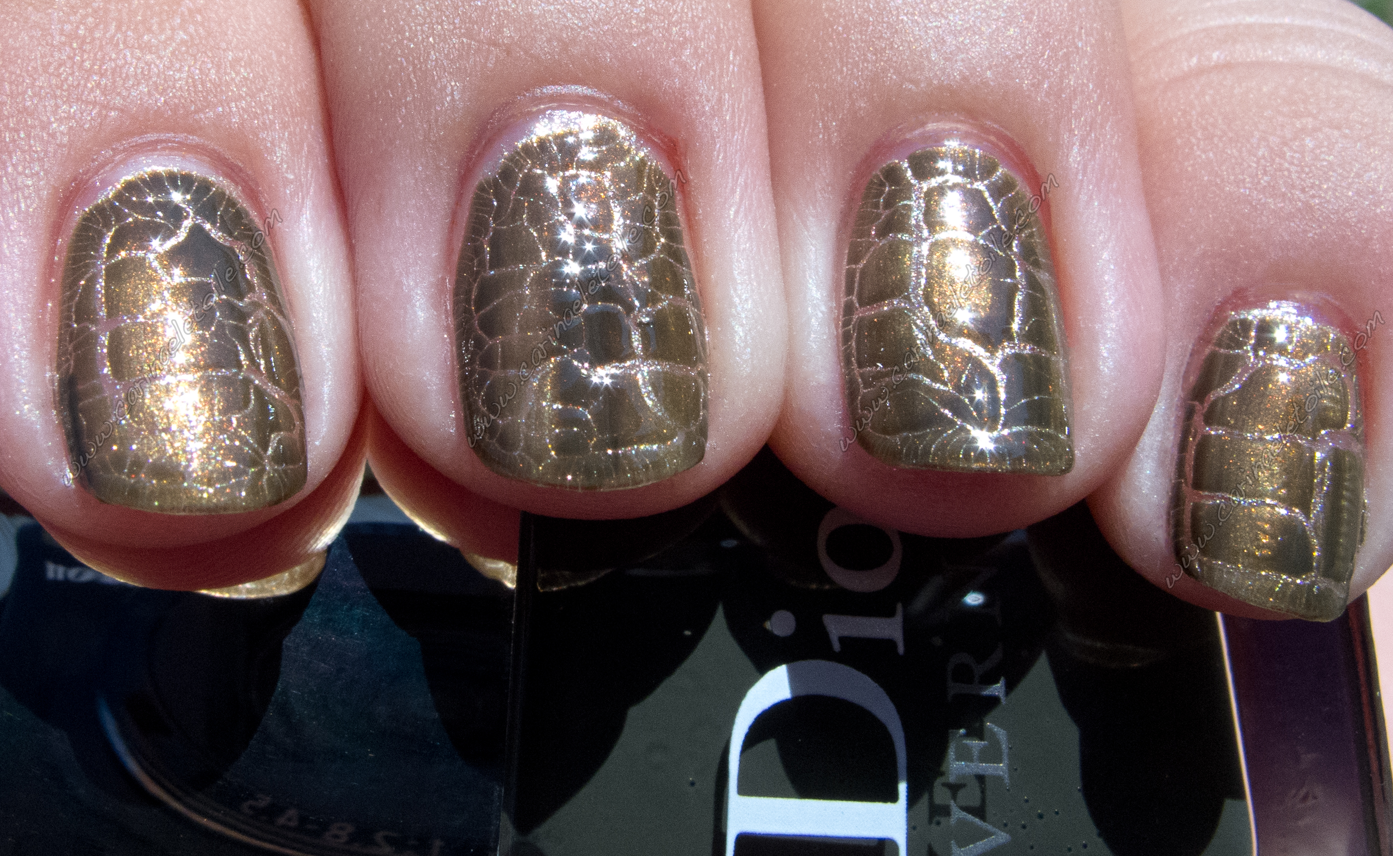 Then I saw the crackle and what it represented…and knew I had to have it. I’m a lover of higher end nail polish. I knew I’d have to pay a pretty penny for this and I hunted high and low, even sending a Canadian friend on the hunt for it once I discovered that Dior Golden Jungle nail polish was not going to be released in the US any time soon. What? What? Whaaaa? WHY?! Who knows what Dior was thinking, but I was really lemming the gold polish in this duo. So there I was, totally feeling the pain of wanting a crackle effect. I tried to talk myself out of it, but to no avail – my heart and mind were set on me obtaining Dior Golden Jungle polish duo.
