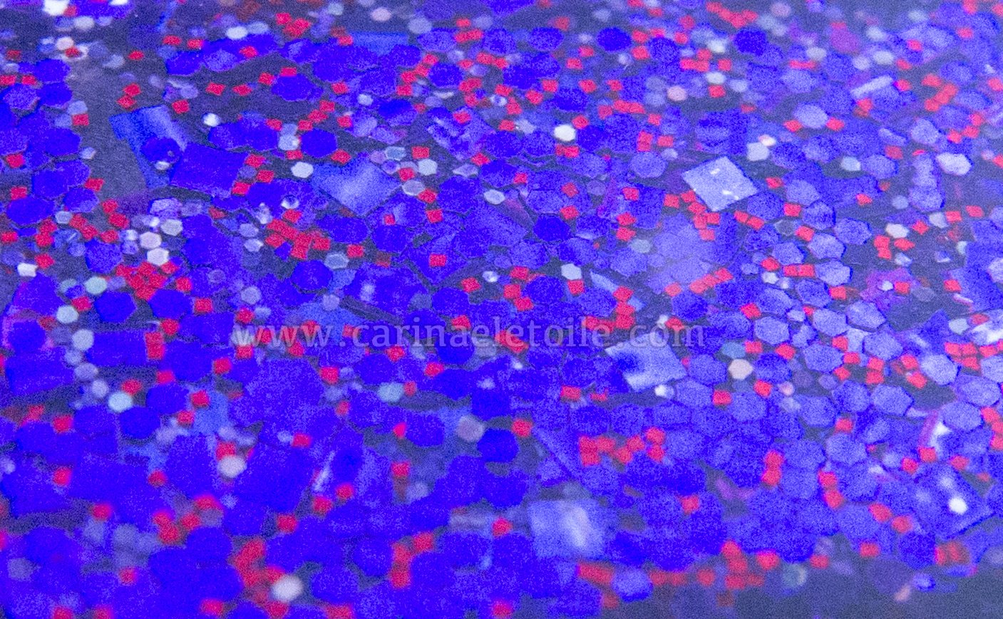 Lynnderella Love Potion No 99.9 is so densely packed that the two coats you see below were more than adequate coverage. Lynnderella describes this as “Love Potion No. 99.9Â is a new formula about with about 25% more glitter. Purple and violet hexagons and squares with micro-red glitter in a cool violet base. Multiple shapes, sizes and violet holographic glitter.”
