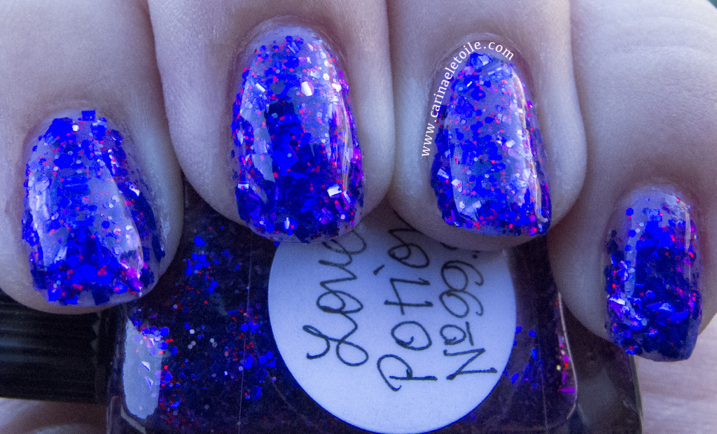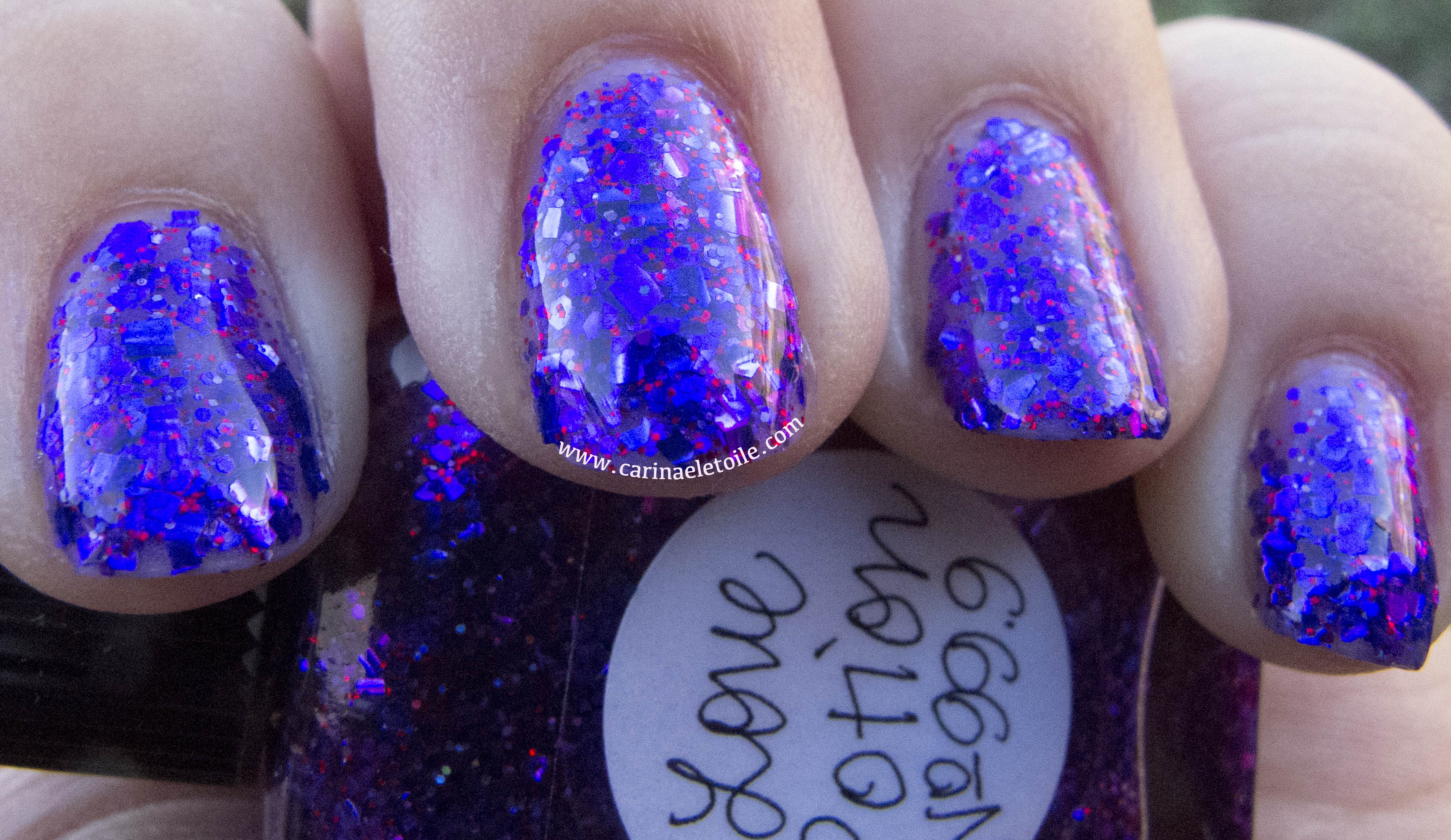 So much glitter freaked my camera out! Lynnderella Love Potion 99.9 confused my poor camera – it can’t deal with purple/blues.