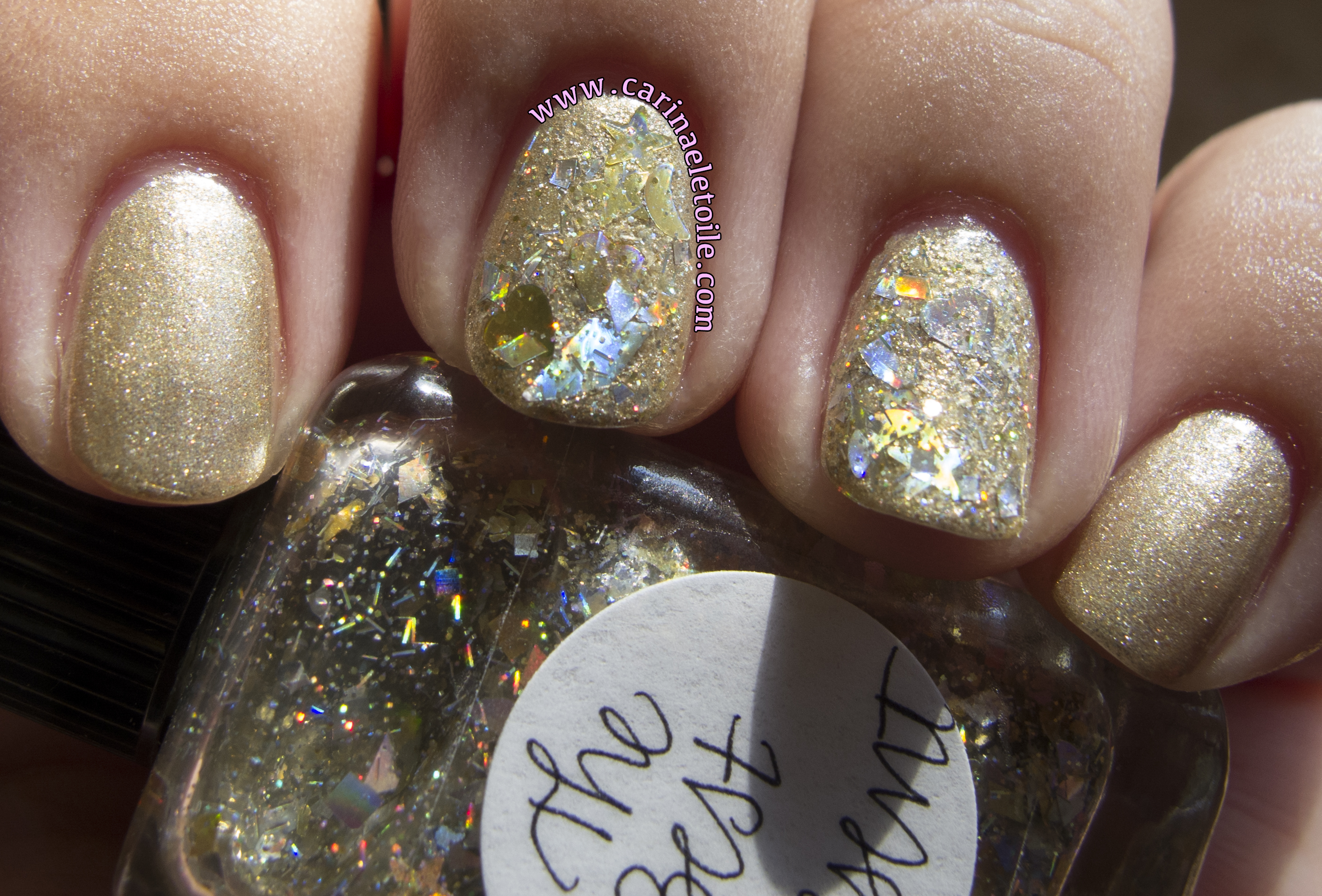 To see how awesome the glitter is, make sure to see the images in their full size. I know my cuticles look awful, but it’s the best way to see the glitter. I did three coats of TBP because I wanted to make sure that I got as much glitter as I could on my small nail beds. I swear, some of the glitter is bigger than my actual nail. LOL Beautiful heart, moon, diamond and other shapes abound in this polish. Drying time was quick. One coat of Lynnderella’s Glitter Tamer was used because glitter is always a thirsty girl.