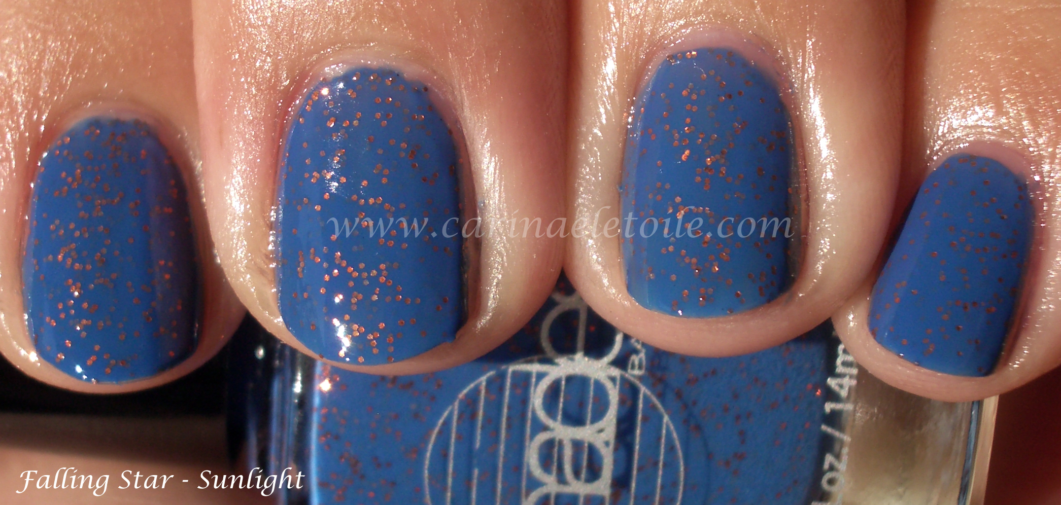 Application is fine – not too smooth, the polish wasn’t prone to cuticle pull, it dried in a decent amount of time. Formula wasn’t too thick nor was it chalky. I was hoping that the glitter would be a bit more pronounced when on the nail. In all honesty, when I was thinking of my all time favorite color ever by Barielle called Falling Star…the most perfect shade of blue bastardized by that copper glitter. I have yet to find a dupe for that blue.