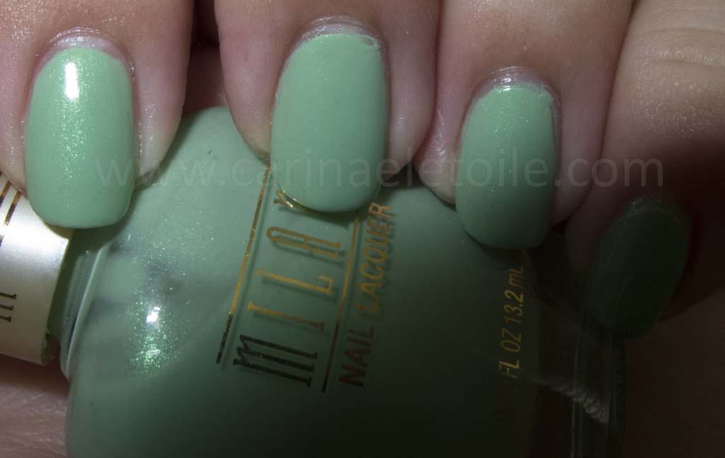 Strong sunlight turns this almost minty…Mmm…mint…mint ice cream…Mmmm. Slight shimmer can be spotted on my pinky!