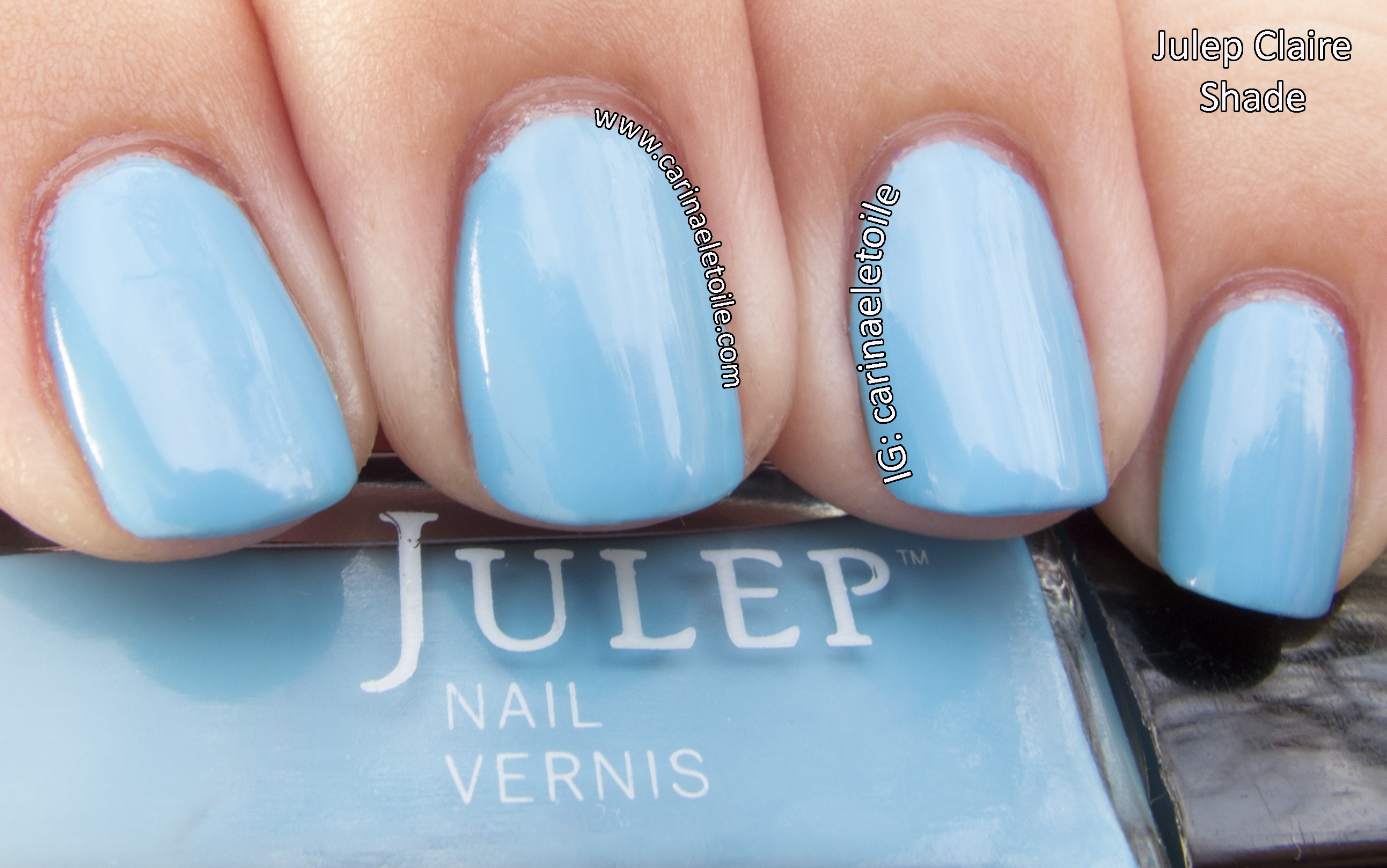 Unfortunately, this color is rife with problems. So while I love the fact that this is a sky-blue creme, it was runny. This is my first time using a Julep polish and I certainly hope that the entire line is not as awful as this.