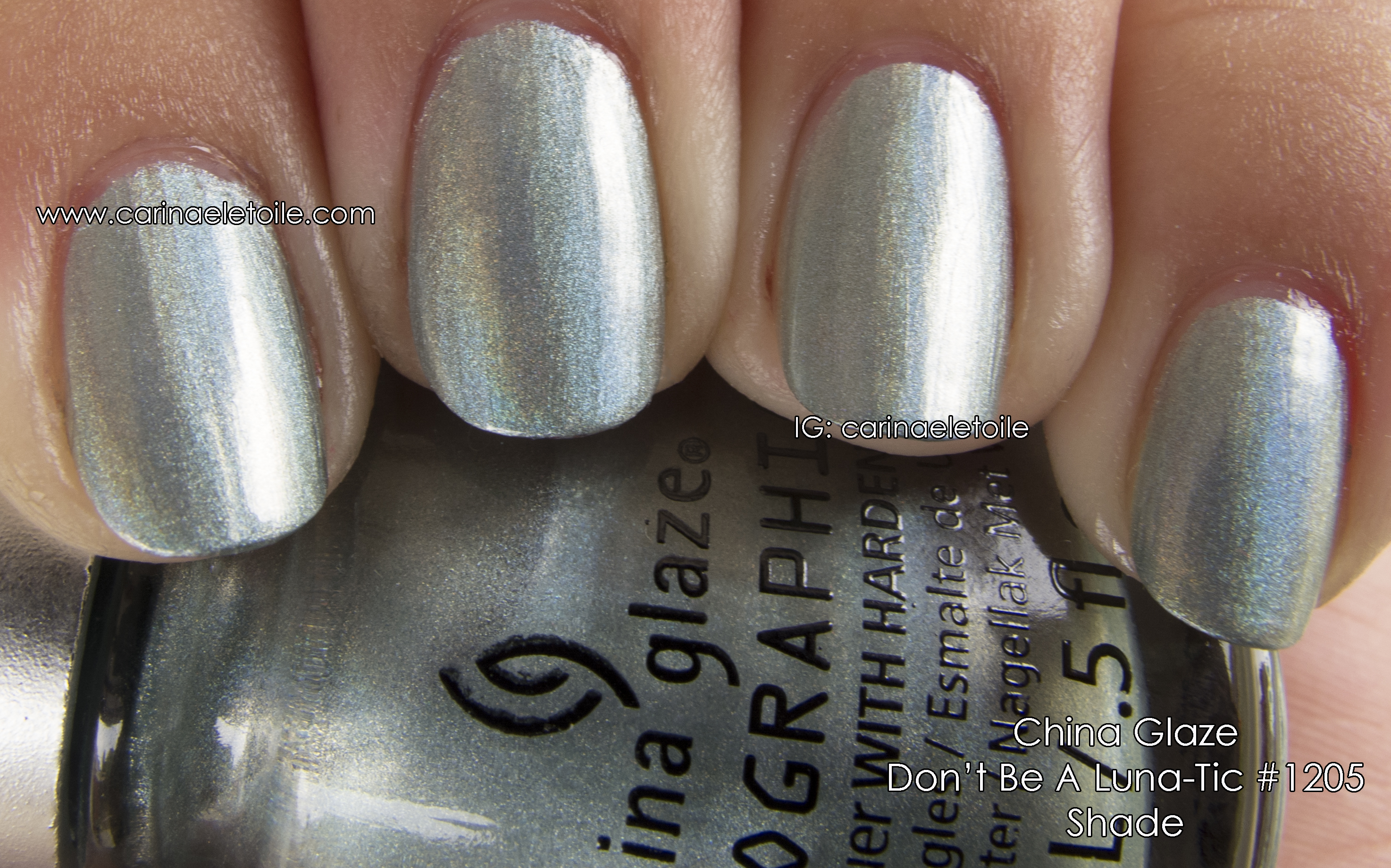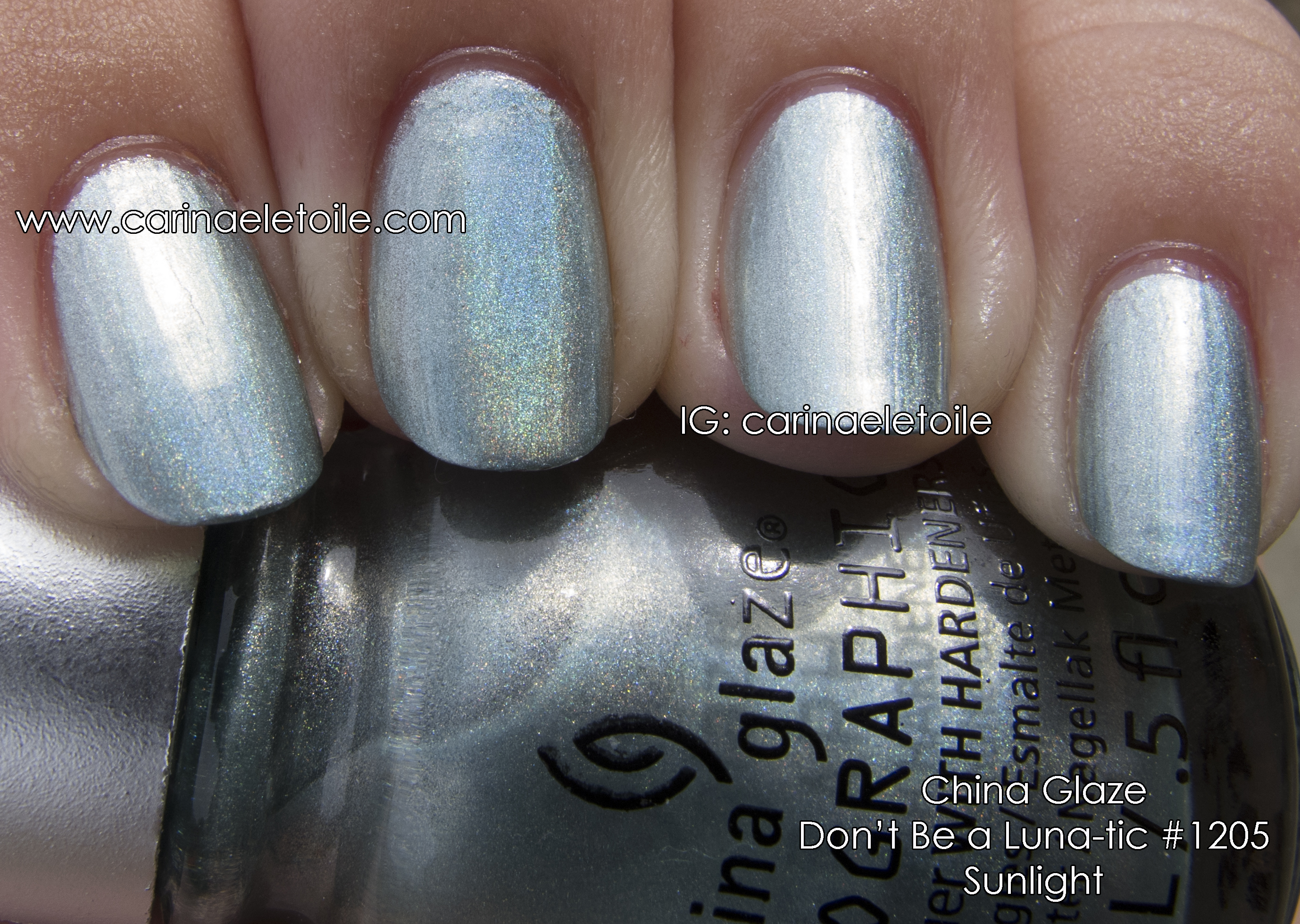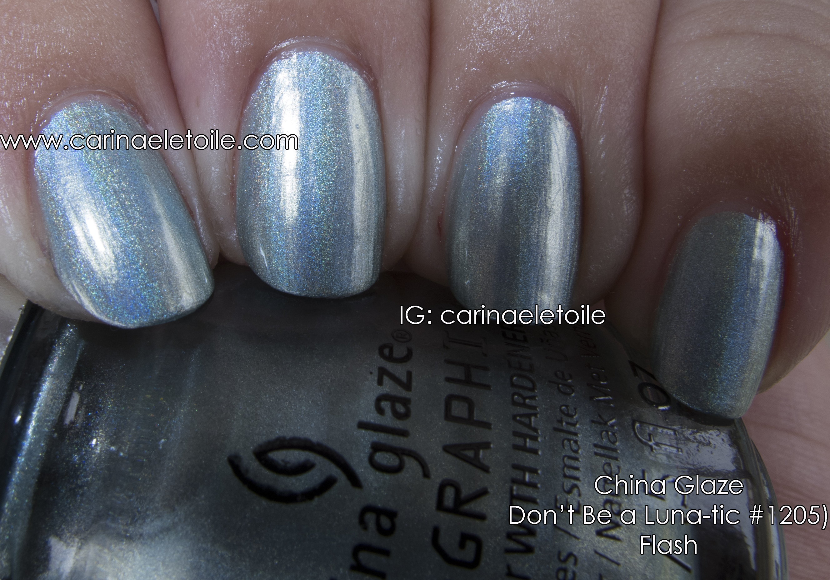 Now when I saw Don’t Be a Luna-tic, I giggled at the name. Well played, China Glaze. Well played. Sadly, despite its funny name, this shade is no laughing matter. I was hard pressed to find the holo in shade, flash or sunlight. Even in various indoor lighting, it was not coming out to play.