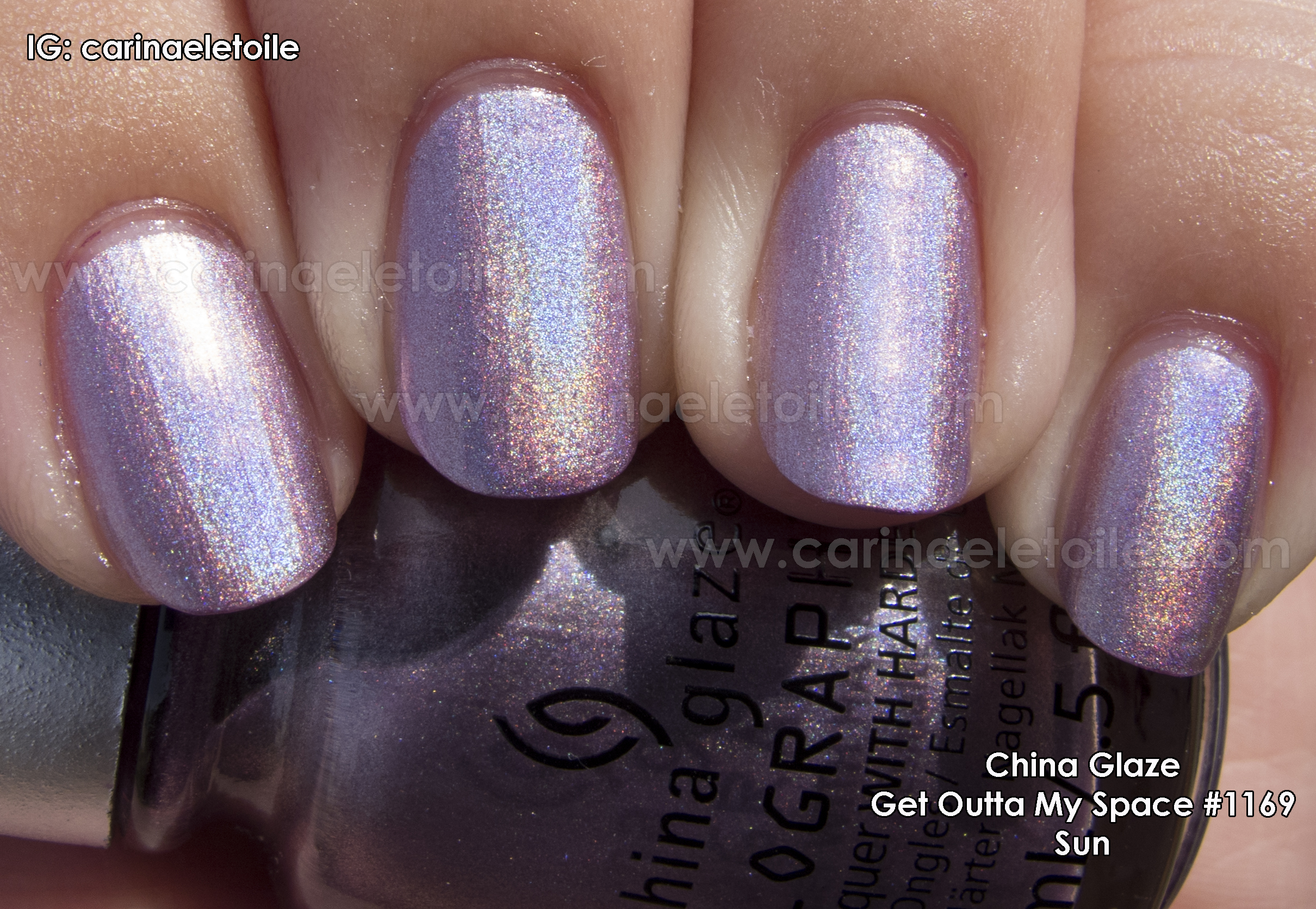 Get Outta My Space is A cool toned lavender holo. This feels very ho-hum in that I have this in my stash…from other brands and hell, even China Glaze itself when it was in their first effort at holographics.