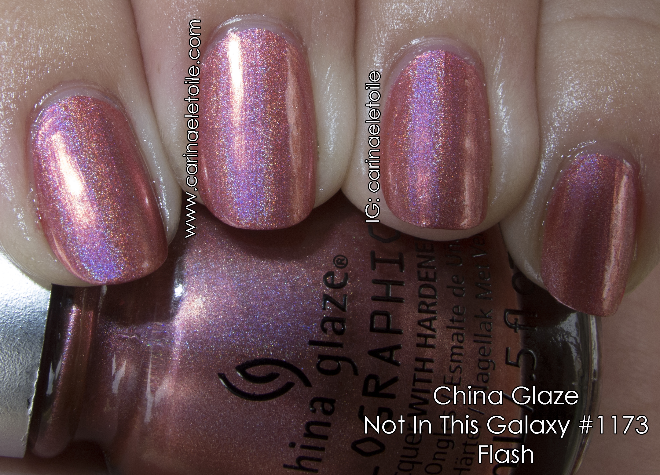 Not In This Galaxy the least out of the China Glaze Hologlam collection. It’s too…kind of like English rose got hit and run over by a giant peach. It had shades of pink undertones with peaches. Just…no.