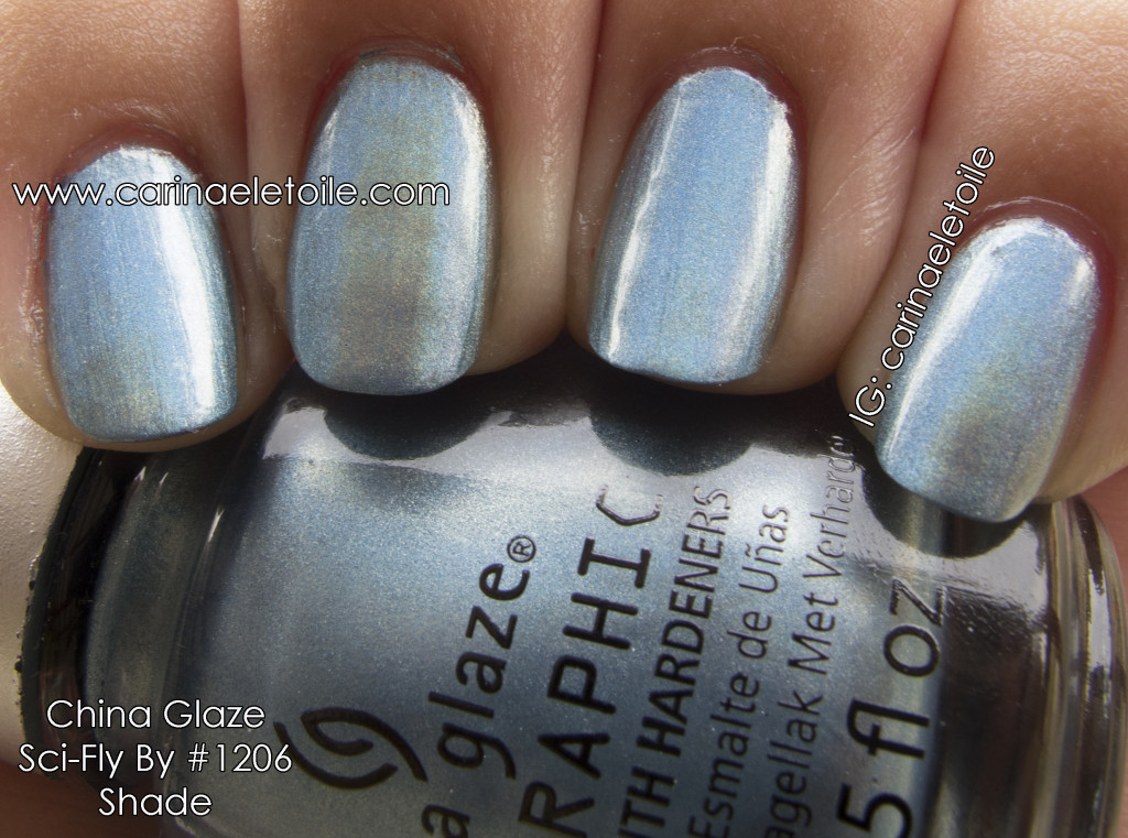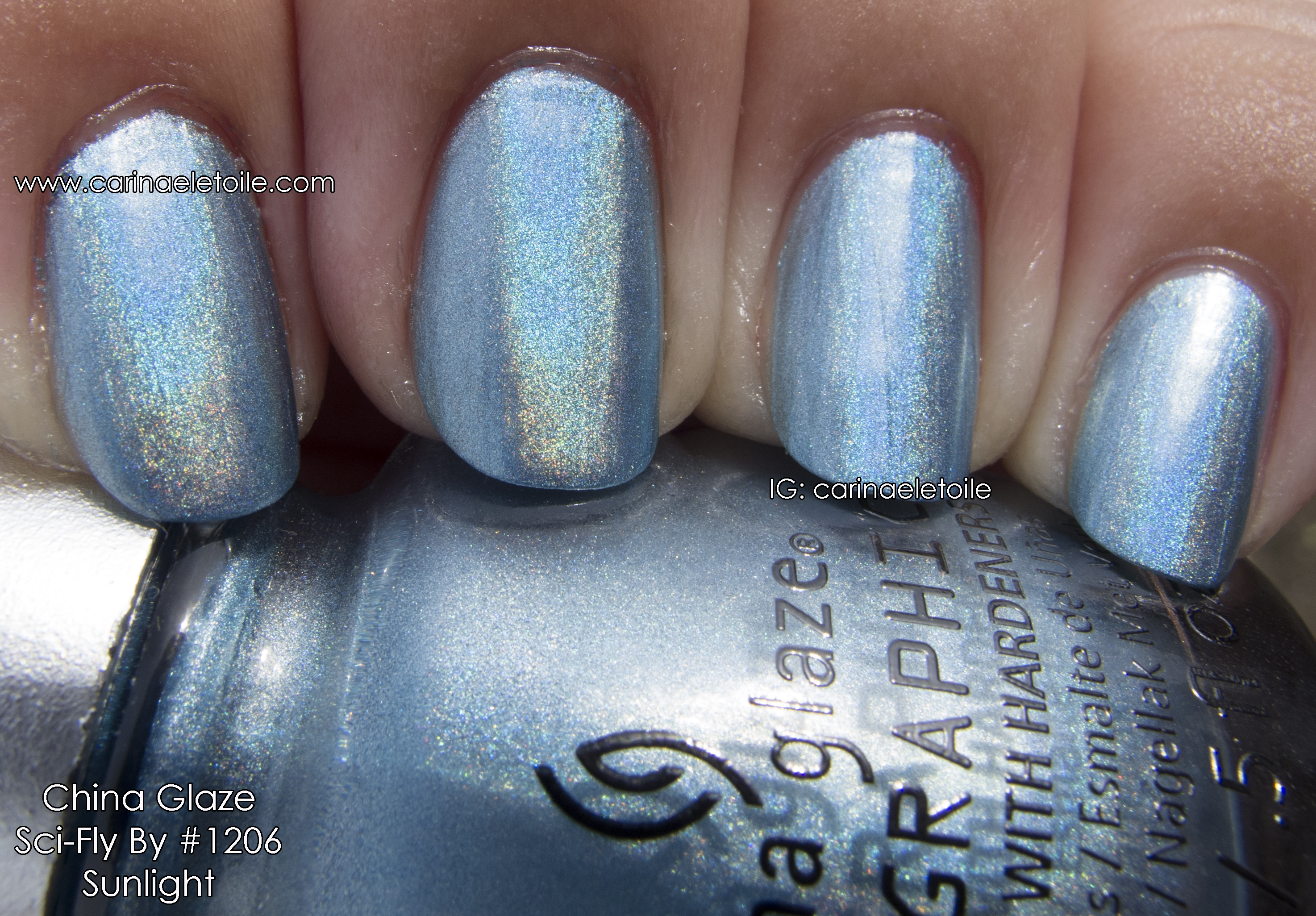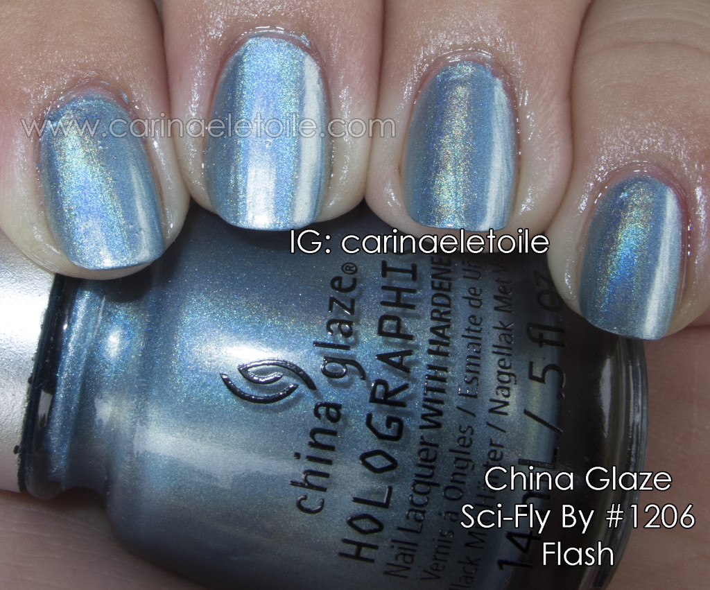 Sci-Fly By is nothing to write home about out of the China Glaze Hologlam collection…it’s a cool toned darker baby blue. Ho-hum.
