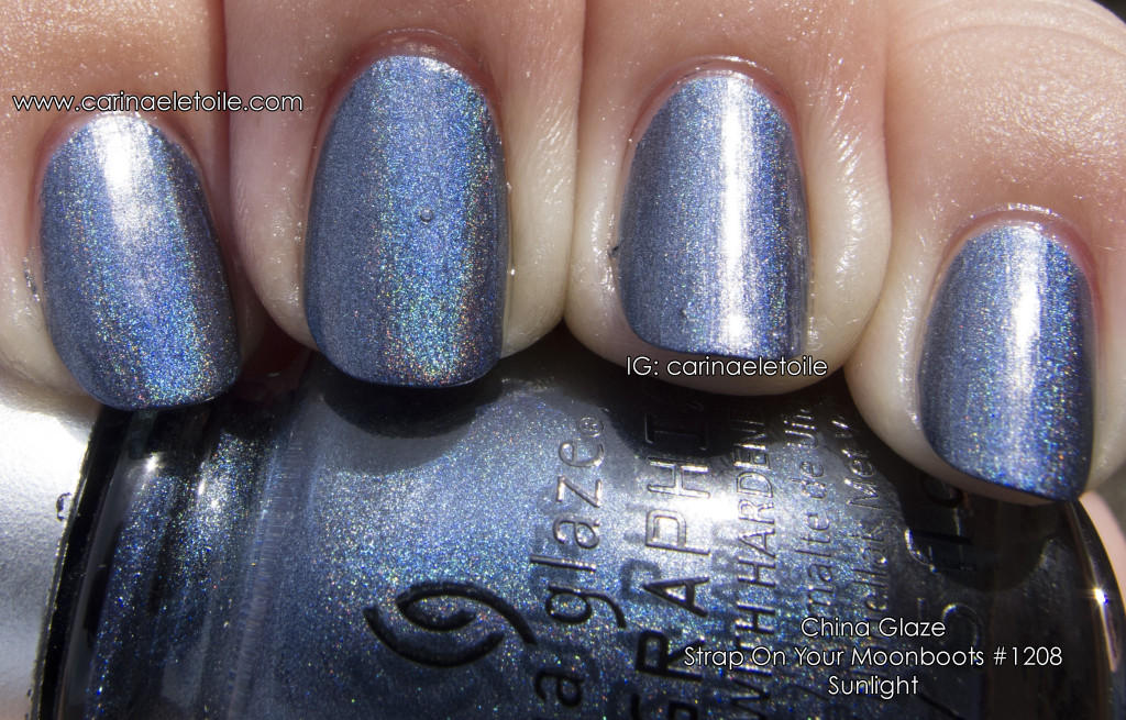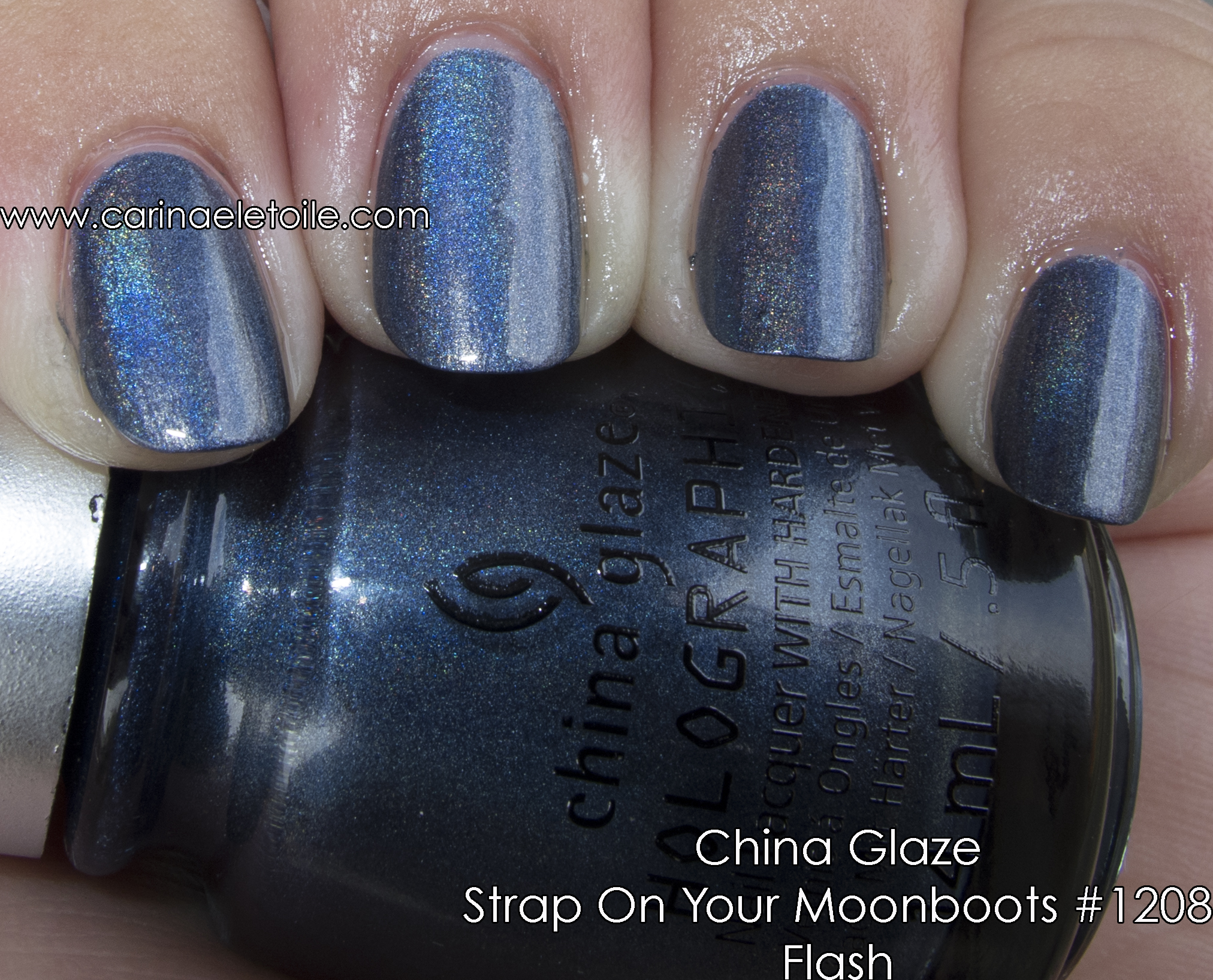Strap On Your Moonboots in the China Glaze Hologlam collection was a bit of a mystery to me…It’s a mystery that I actually LOOOOOOVE it so much. There is something about this blue that is so lovely that I will be wearing this for a few days. I’ve heard some say this is a navy blue, but it doesn’t look very navy on me. That said, I still love it, though!
