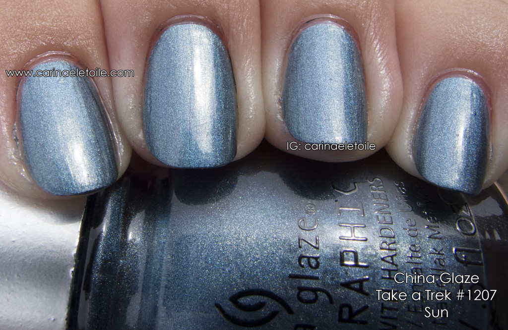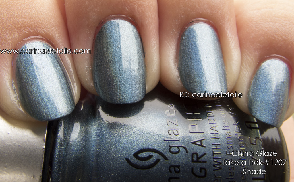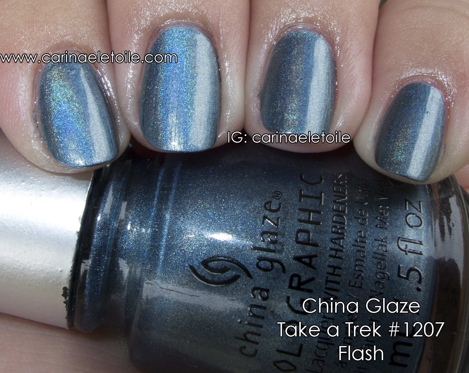 Take a Trek is a blue-grey that is cool toned with a less than strong holo.