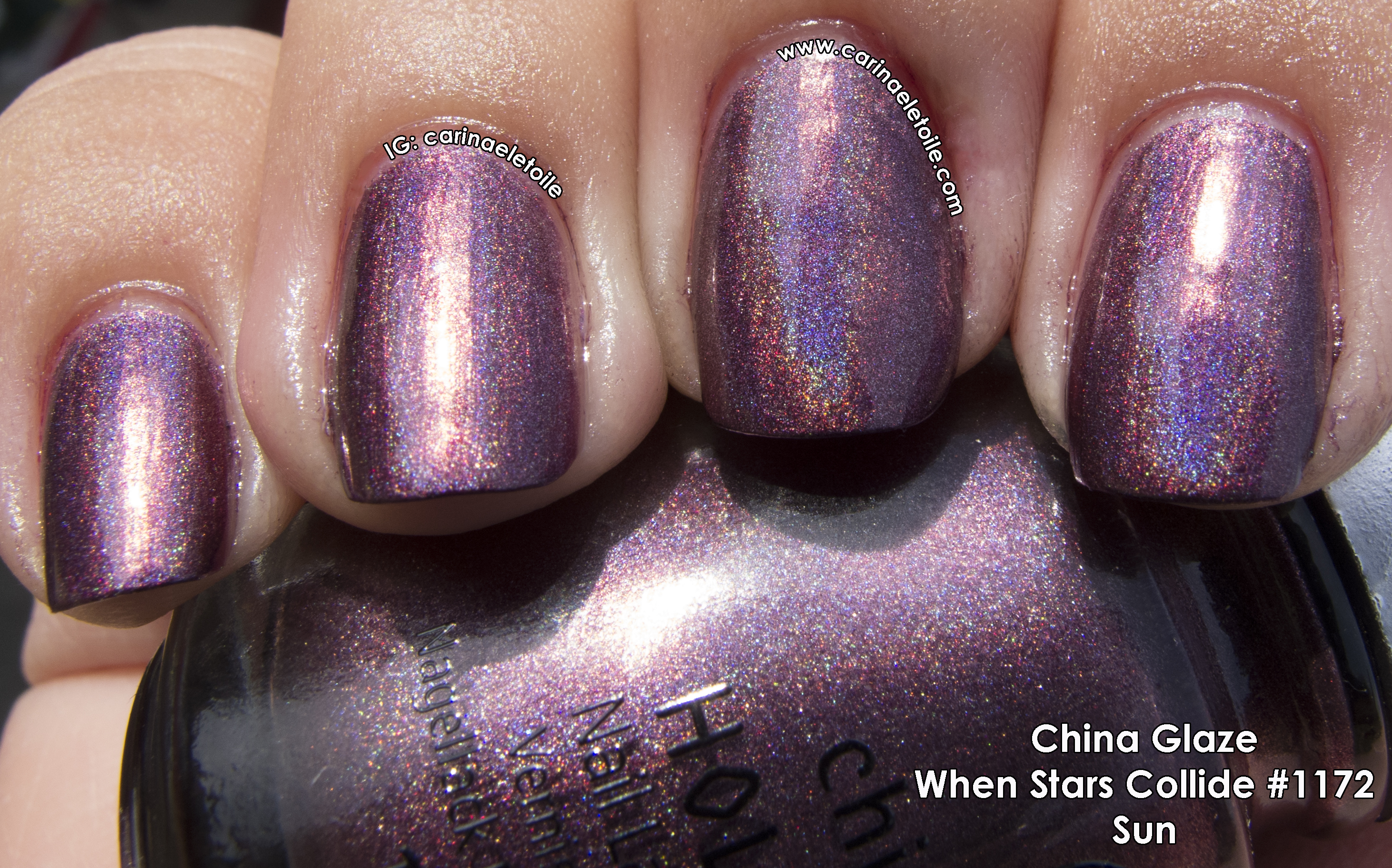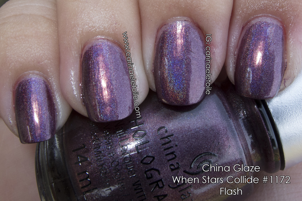 When Stars Collide is one of my favorites out of the China Glaze Hologlam collection. It’s a beautiful deep plum. Also, the holo in this is really trying to not shine, but it does.