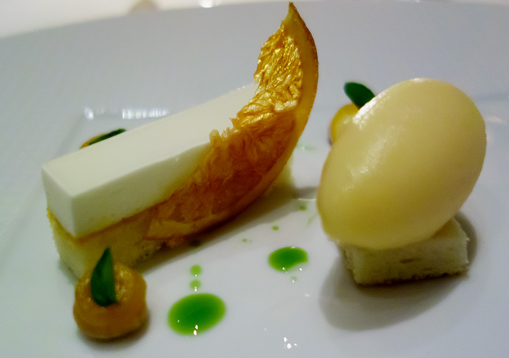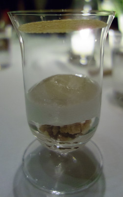 Notice the little wafer at the top of the glass? It was to act like caramelized sugar in creme brûlée. The white frothy stuff tasted a bit like champagne to me and the fruits at the bottom tasted like passionfruit and something else. It was yummy.