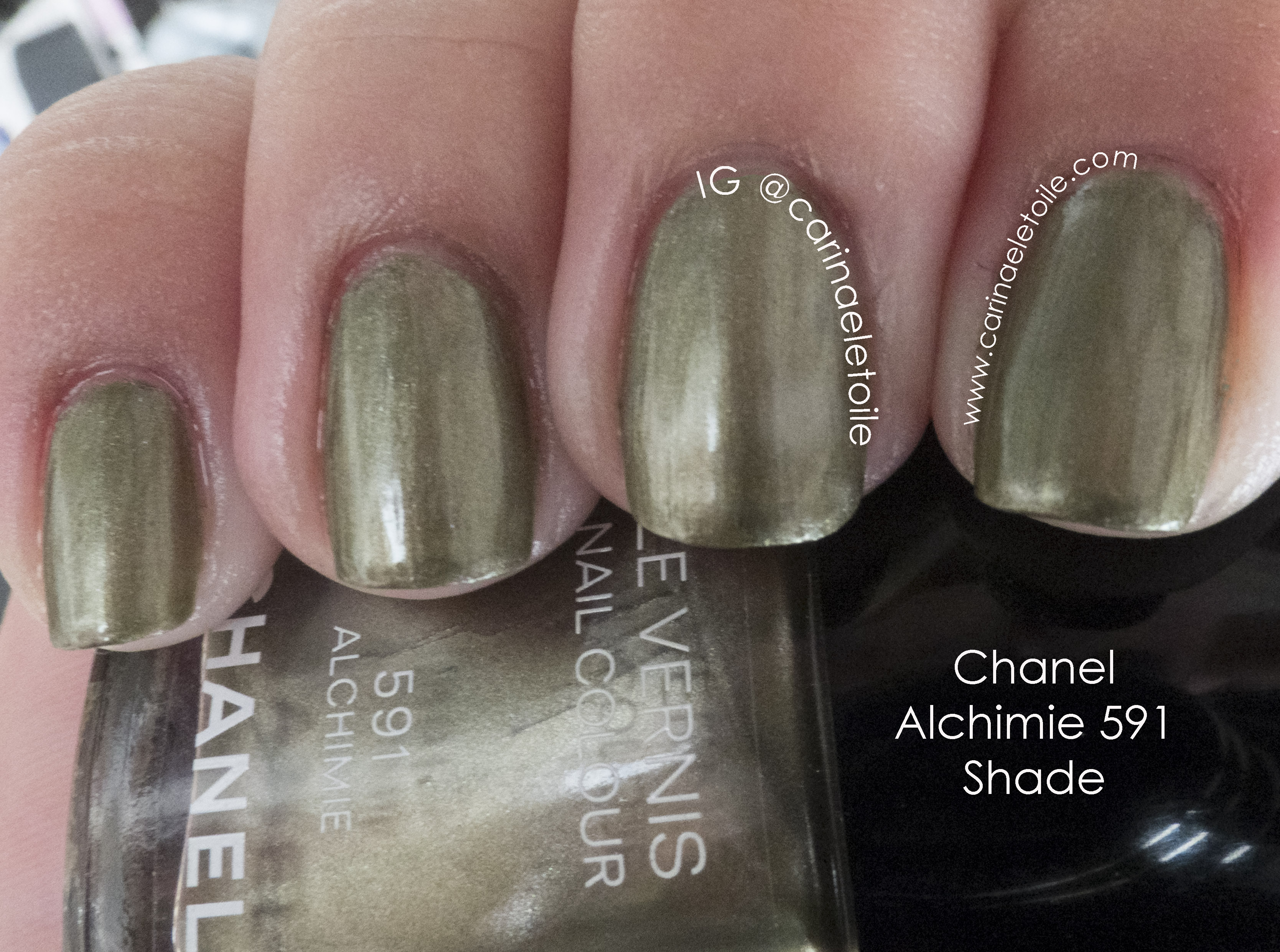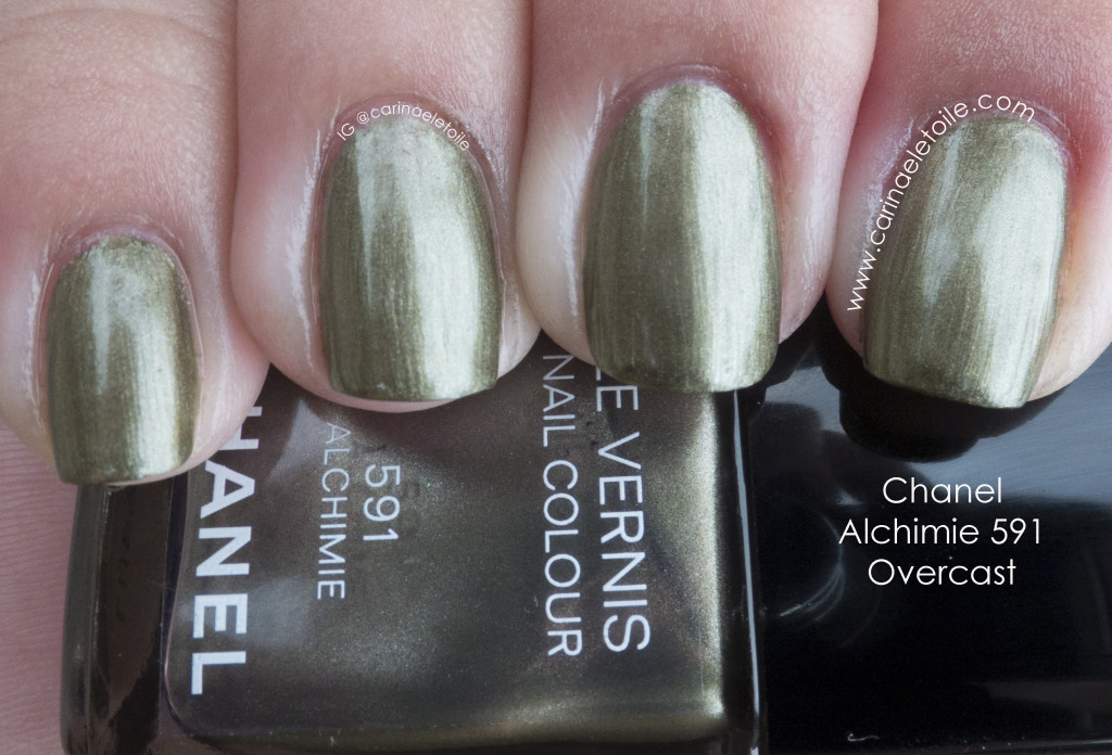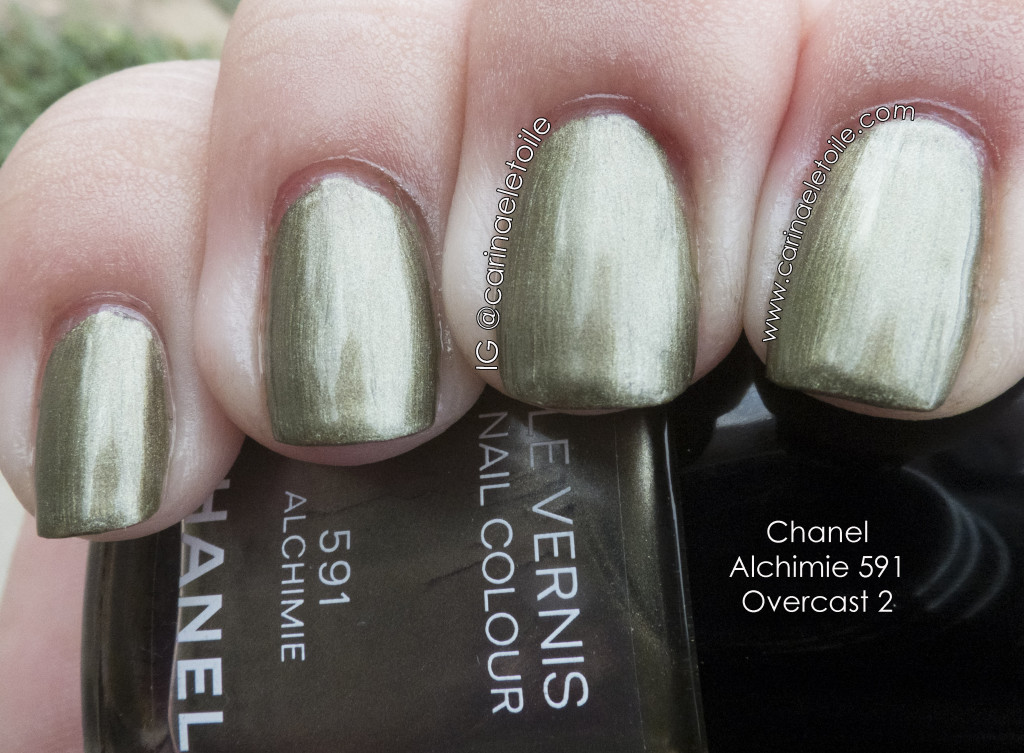 Chanel Peridot has a green-gold-blue flash that runs through it, making it a duochrome. This has nothing of the sort. Both are similar because they have a frost-like quality that drives me batty during application – you know what I mean – if you don’t get the strokes juuuuuust right, your little pearlescent frostiness will have lines that will point out your deficiencies in application. So OCD people like me tend to hate/dislike frosts right off the bat because one can’t control it in the way you normally would a creme polish finish.