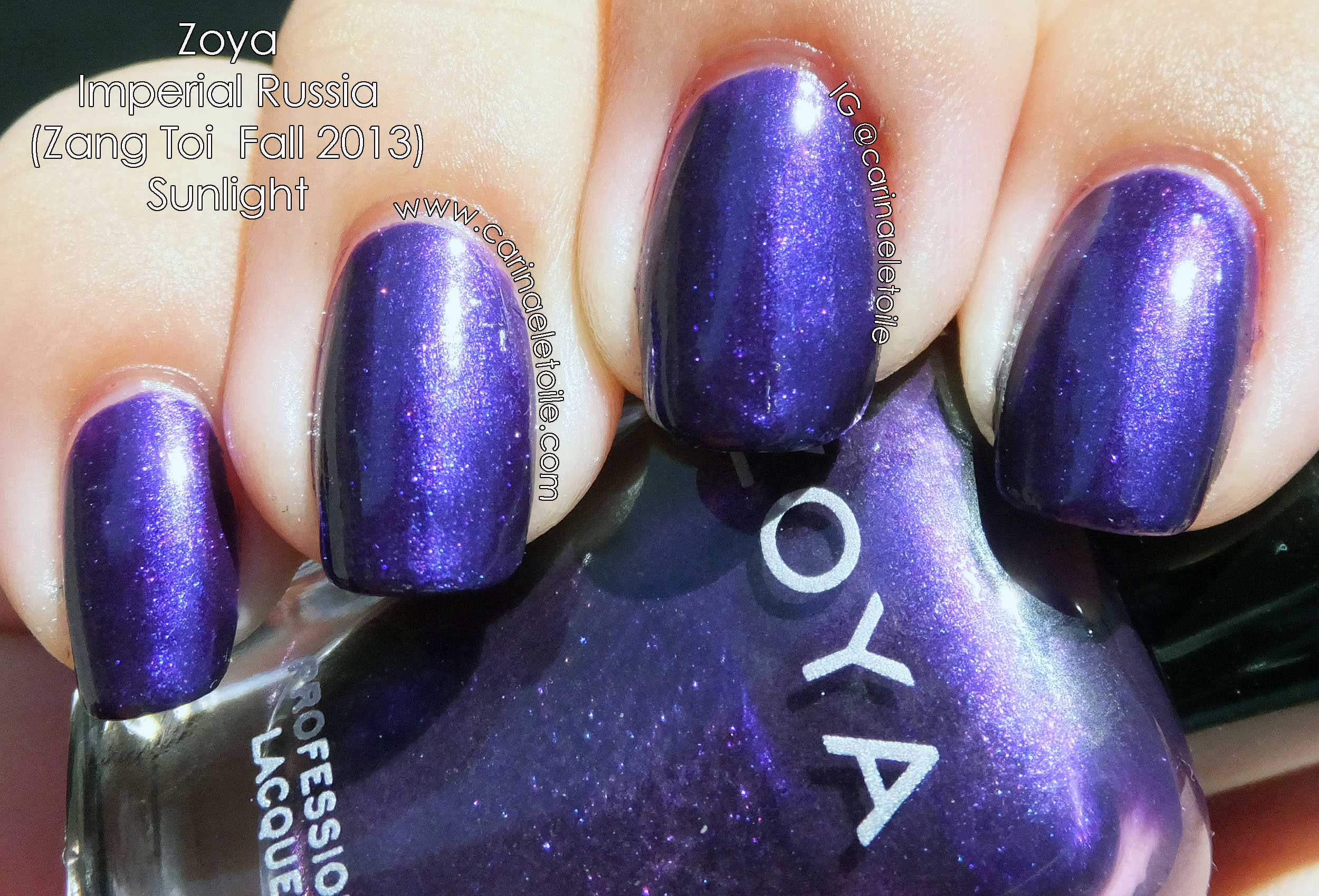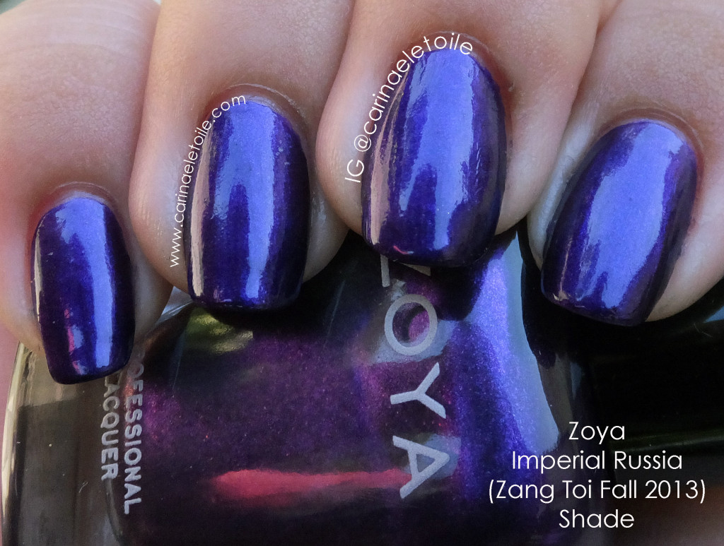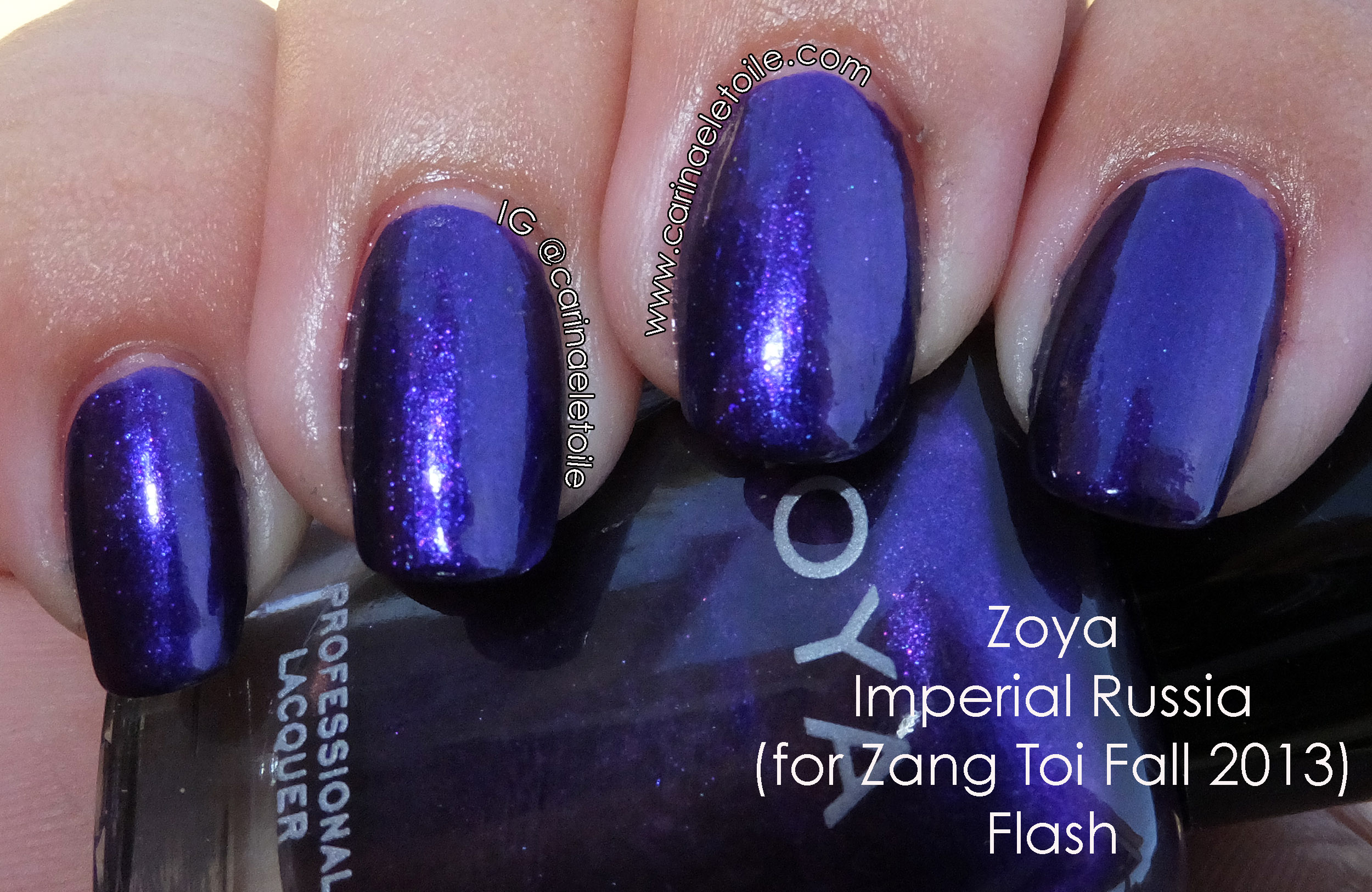 I guess Zoya Imperial Russia will be released as a surprise elsewhere down the line. In the meantime, I thought it might be another color in the Zoya line, but it seems it’s not. I’m sure if I had the time to research it, I’d be able to find that out. However, I didn’t. Sorry. Even googling now doesn’t seem to pull up anything except the closest that comes to this is Zoya Suri, but even then it’s lighter and more on the lavender side and not purple.