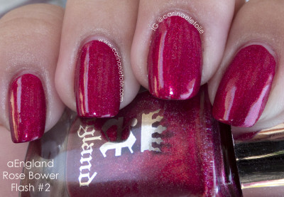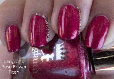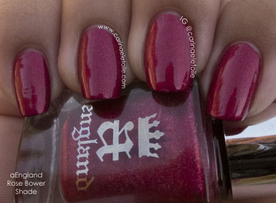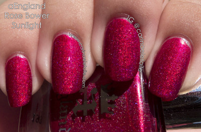aEngland Rose Bower is part the Burne-Jones collection that was released earlier this year. It’s a gorgeous red based fuchsia with a scattered holo. Talk about overload that you have to have in your collection. Red holos are hard to come by and good ones are even harder.