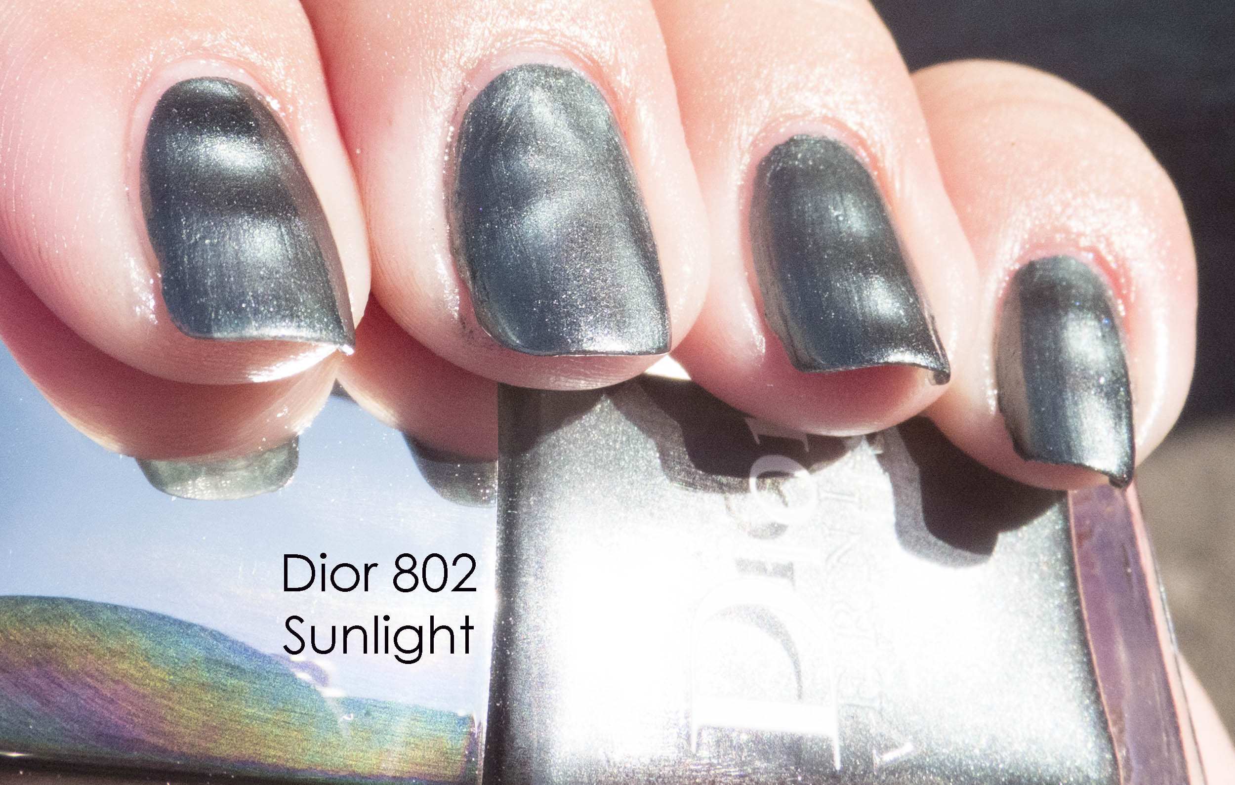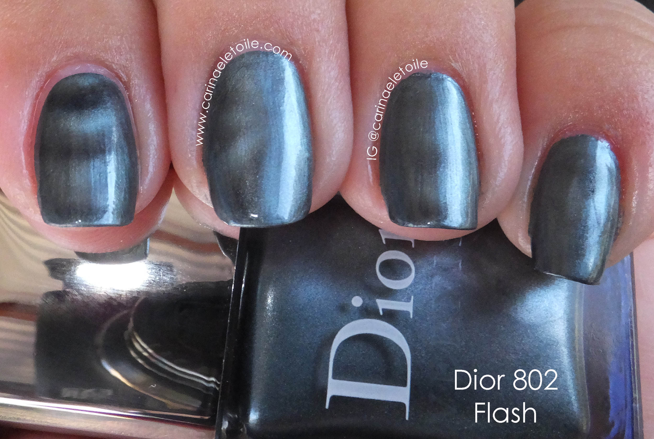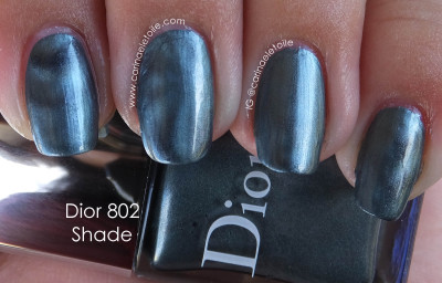 First off, Dior 802 is a gorgeous deep grey that frankly, doesn’t need the metallic pattern. It’s a bit like gilding the lily.