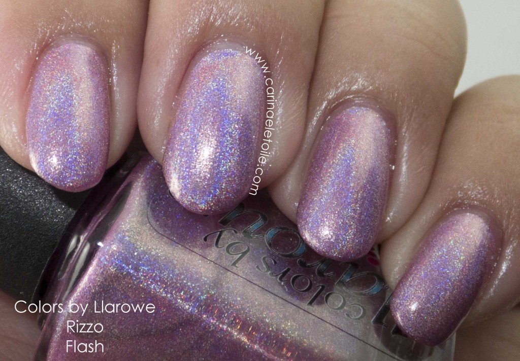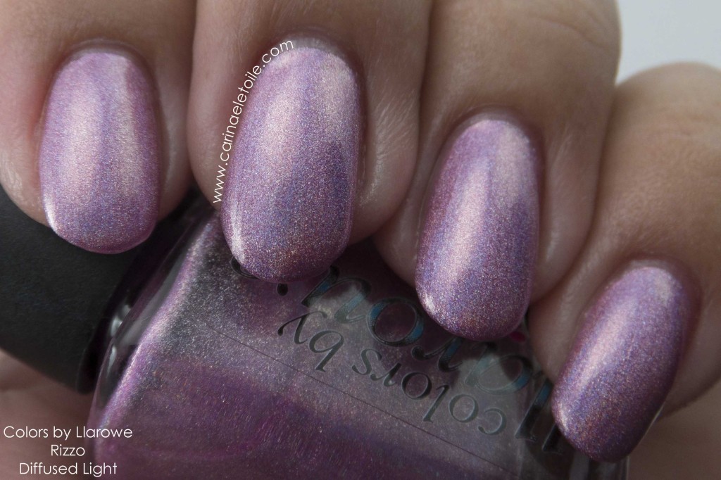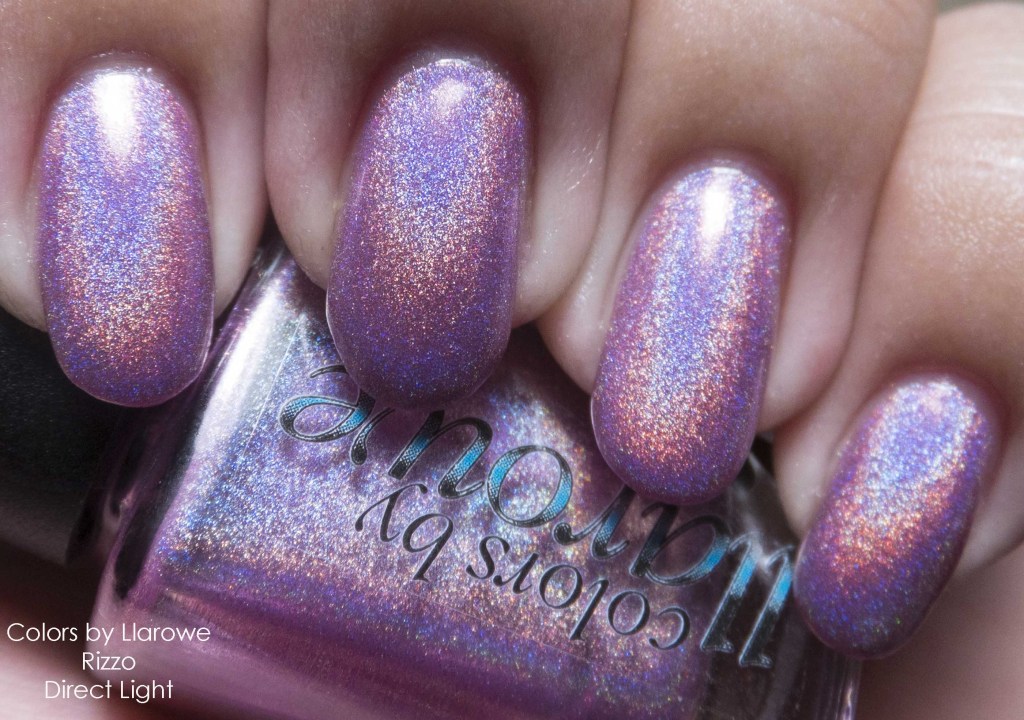 Colors by Llarowe Rizzo is a lovely baby pink, strong linear holo. I had originally bypassed this color because I felt like I didn’t need it. However, this time around, the collector in me said, “Buy it…buy eeet! Do eeet!” So I did. I’m glad I did. It’s gorgeous and very flattering on me as well. I’m surprised given that baby pinks are not really very flattering on me. This was also an extremely strong holo, which really makes this polish so gorgeous, in my opinion.