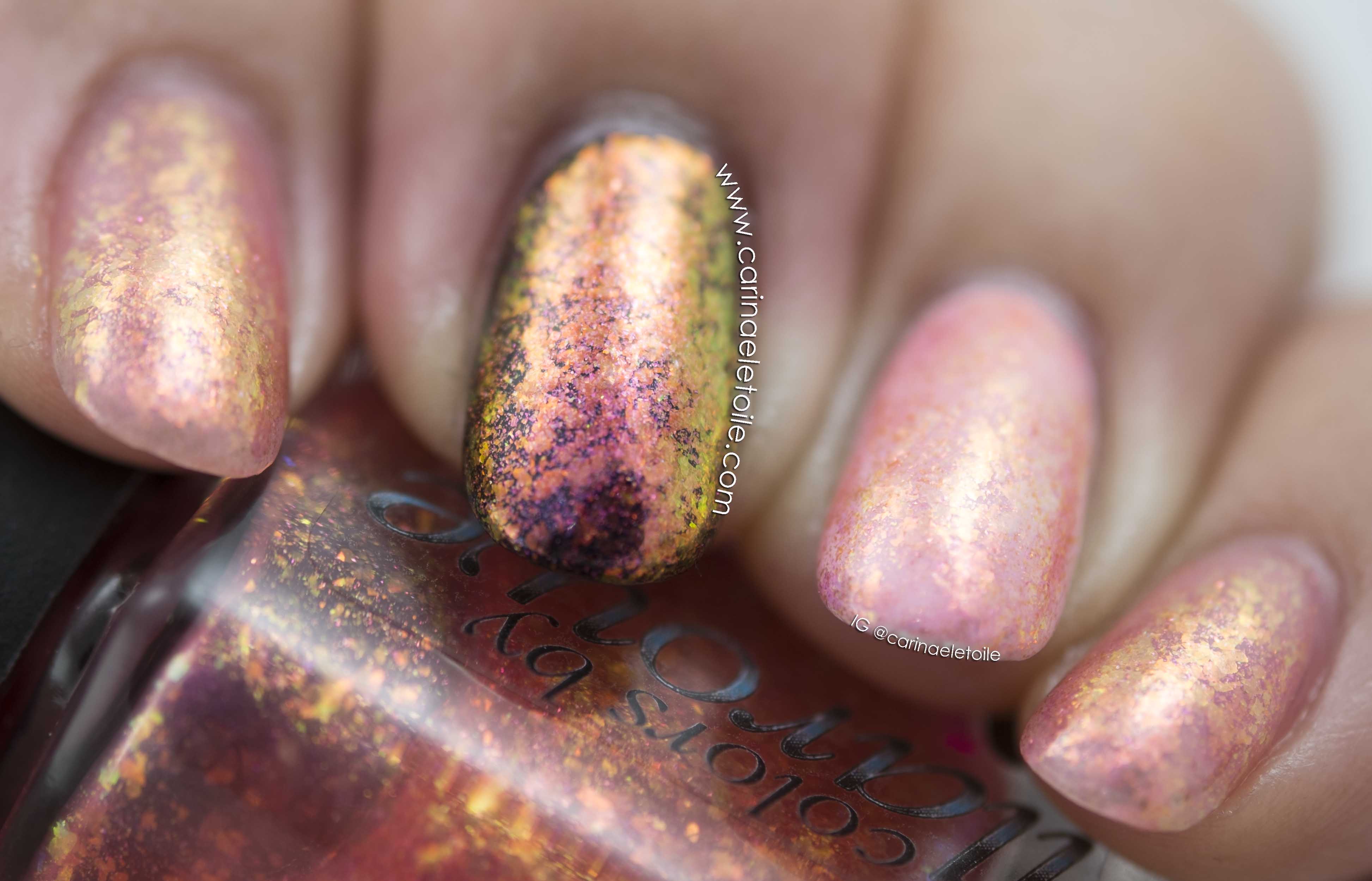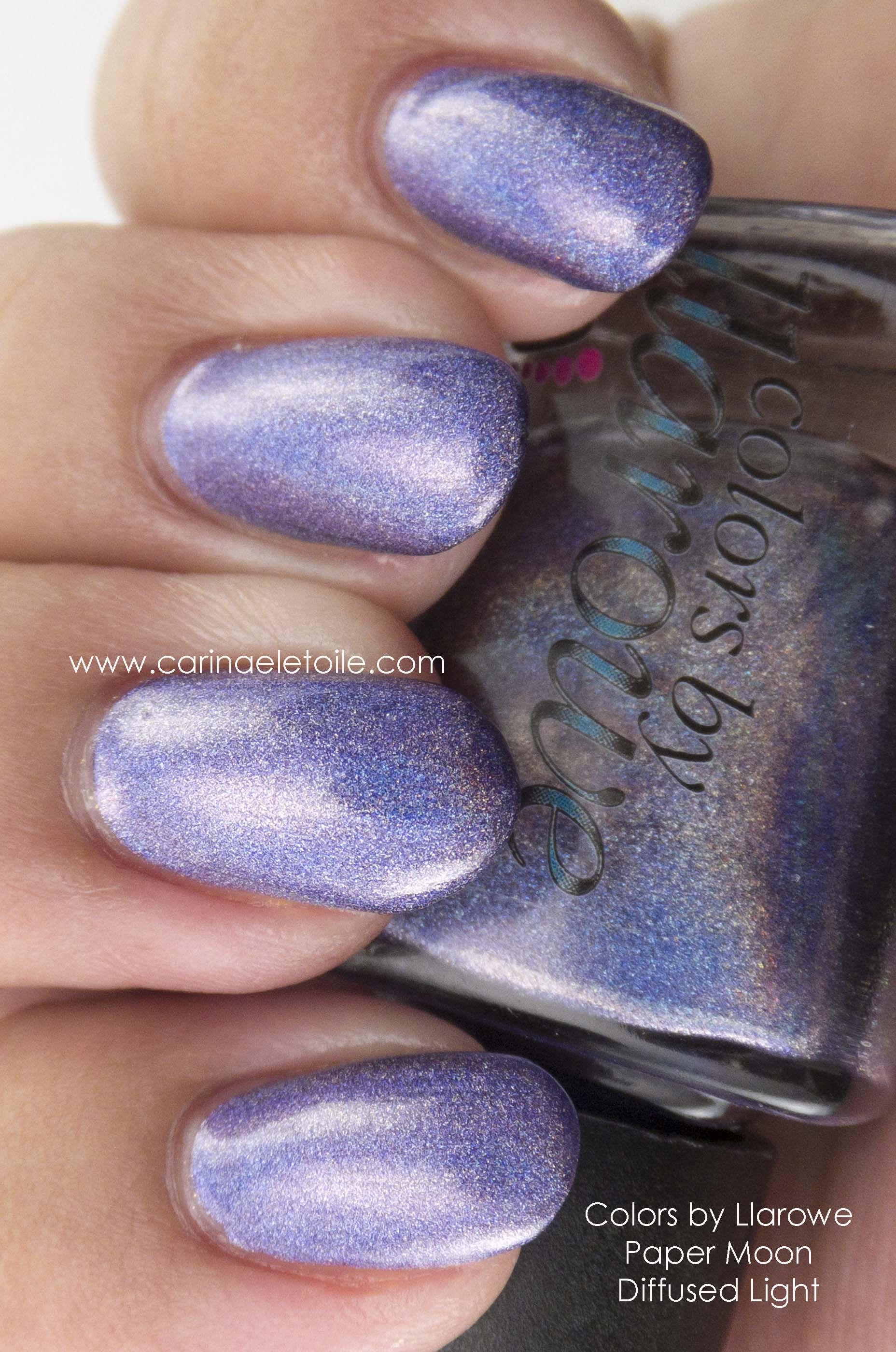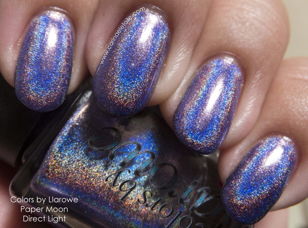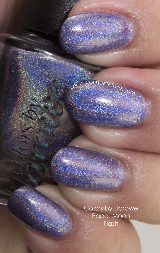 In celebration of Llarowe’s restock today at Noon, MST, I am featuring Colors by Llarowe Paper Moon. This color was something my camera didn’t know what to do with. For once, I was able to capture the true beauty of this color as well as the holo. The holo was a bit mellow in the diffused lighting part, came to play in the flash and totally brought it home in direct light. My camera did not fail in capturing the beauty of this. I am so happy and I’m glad to be able to share. I do love this color and on my next pedicure, it’s going on my toes. Doesn’t it seem like a good summer color?