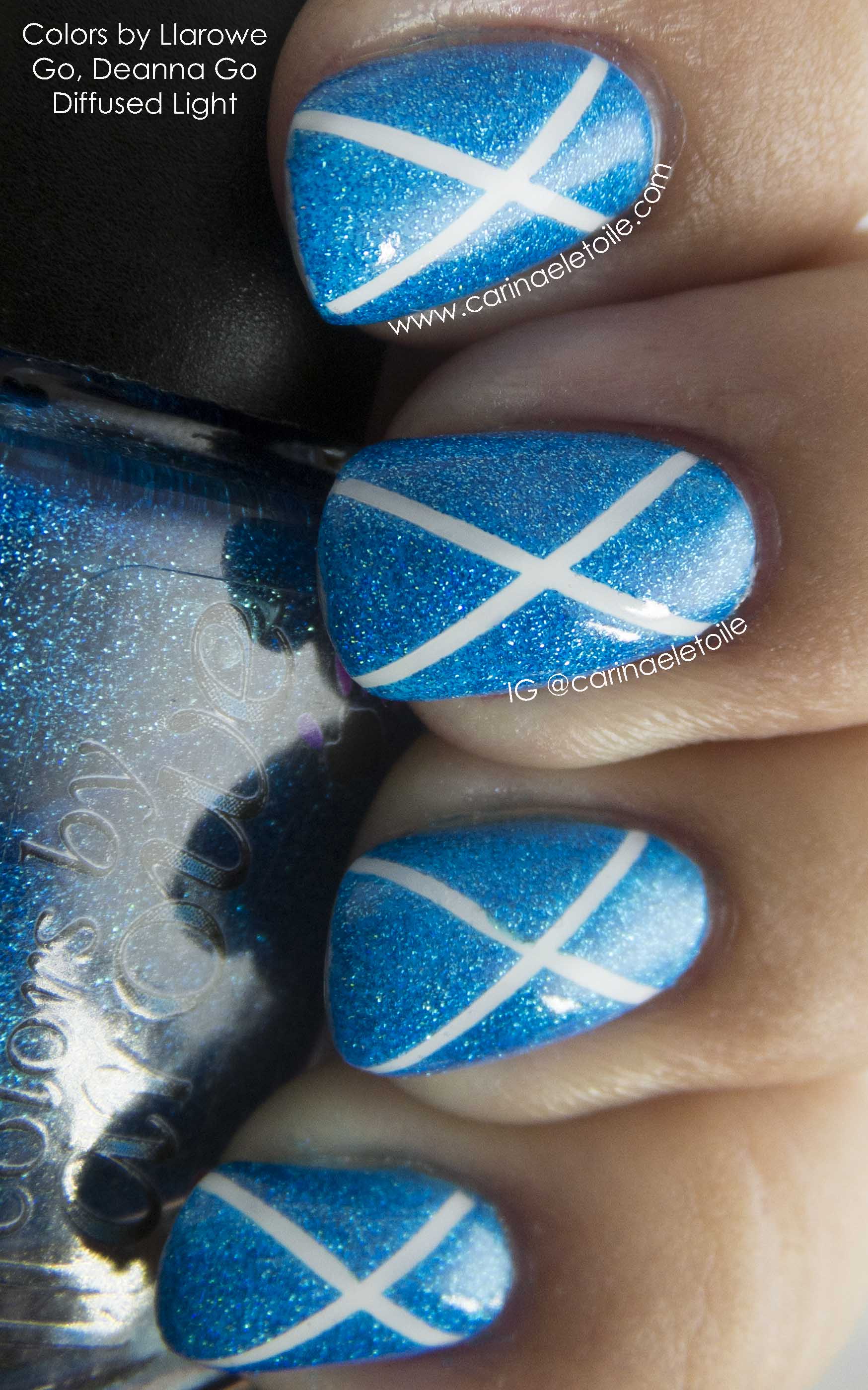Now that my little rambling is over, I now present Colors by Llarowe Go, Deanna Go! in a Flag of Scotland mani. Hope you like it.