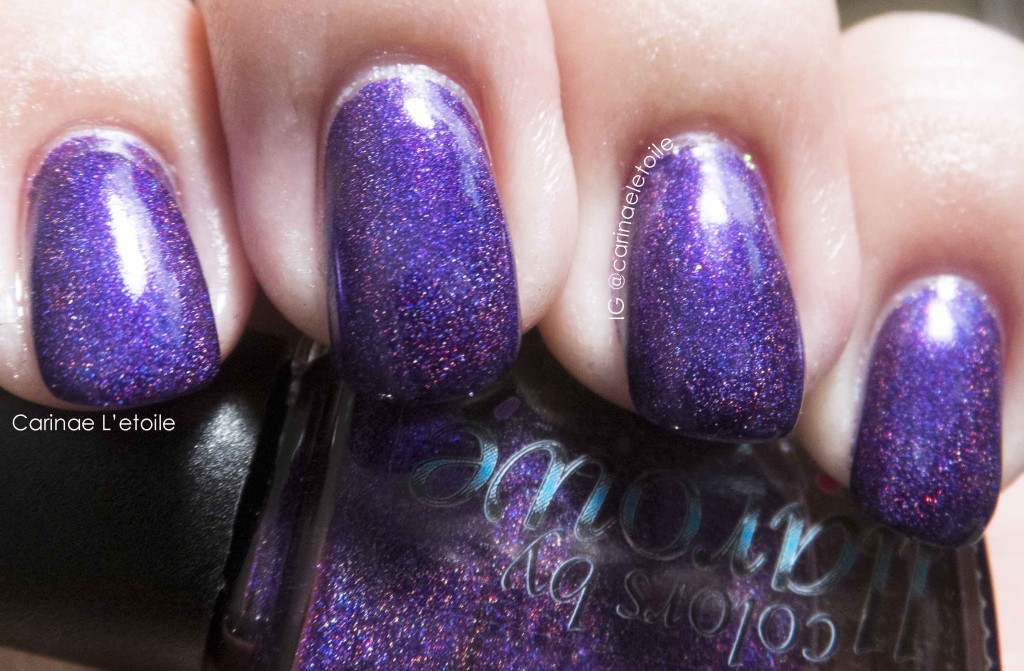 When I first put this on, I thought it was a pretty purple. The light wasn’t bright, but it was bright enough for me to be able to paint my nails and get it took ok. Fired up the lights and then took some shots in the lightbox. Fired up the flash…stepped back and then had the light hit the nails. It was a holy poop smear this is a gorgeous color! moment. I actually had to step back and admire Colors by Llarowe Go Straight before taking the shot. I had to include two images for the direct light one because one shows the full glory of the holo while the other shows the beauty of the purple base. Honestly, it was so gorgeous that I couldn’t contain myself. I’m even wearing this color again as I type!