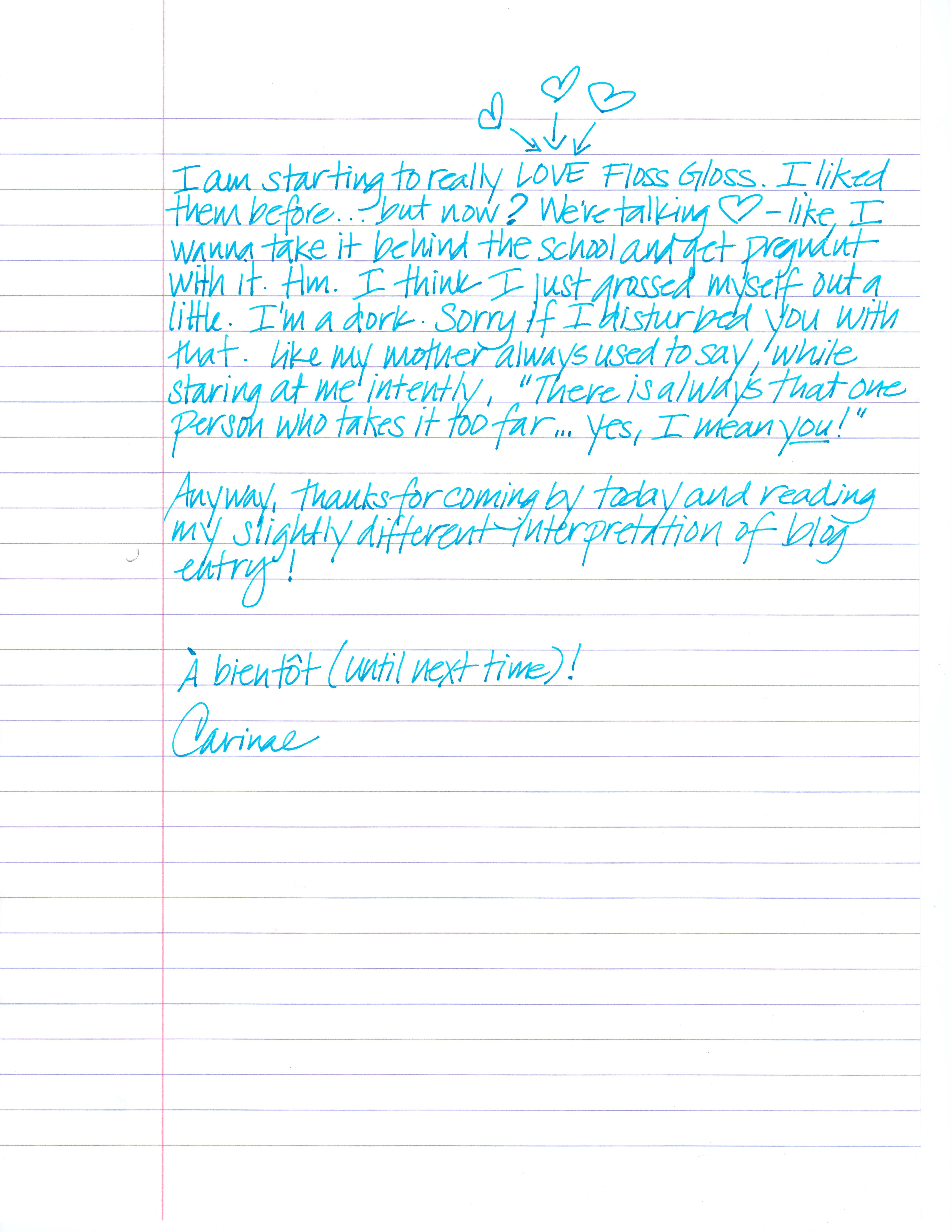 Hm…I have to say that in previews, this totally looks like I have a homework-eque kind of essay thanks to the paper I used. Oh well…I know that I’d never be able to write in a straight line so I’d rather have lines and look like a n00b than to have that slope that goes up or down. As long as you were able to read it, I don’t care!