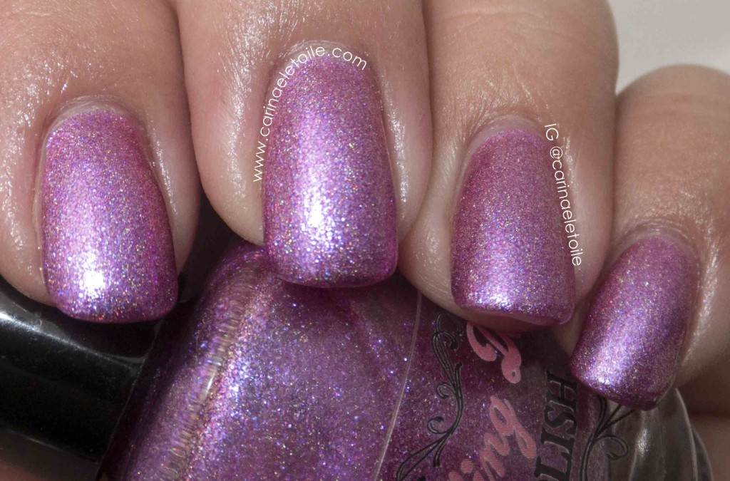 I don’t know what prompted me to purchase this polish because I’m usually not a fan of pink. To be honest, I think I purchased it because of the name alone. Darling Diva Polish I Hate Pink! is a gorgeous color with a strong holo that I had a hard time capturing. I also found this to be easy to apply and quick drying. The pictures below show Darling Diva Polish I Hate Pink! with two coats of medium-thick application.