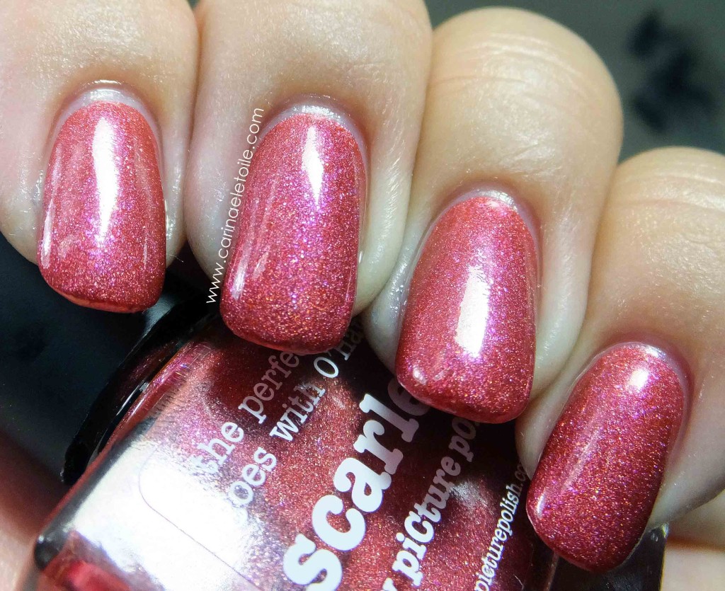 Picture Polish Scarlett is my first foray into this brand. I had seen it many times before, but had so many to go through that I kept putting it off…then I just said, “Oh, forget it. Just buy it already!” I purchased Scarlett, eerie and two others, which I will be showing soon.
