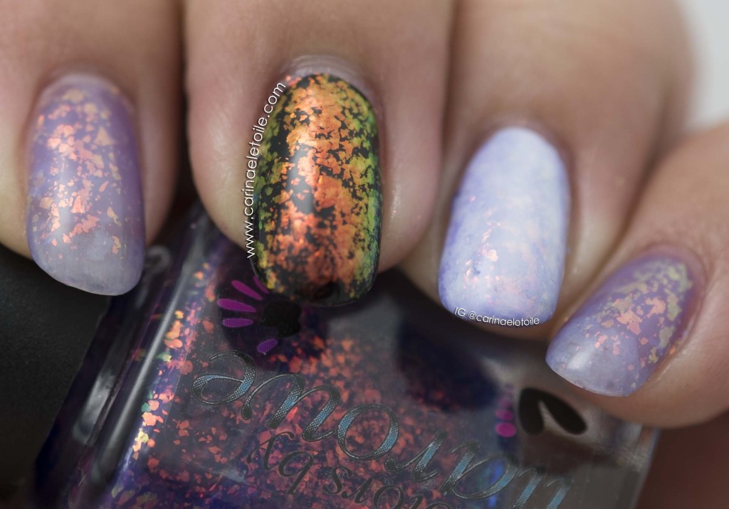 Bare nail. Base is super pretty and I love the purple tint and the flake. It’s all so breathtakingly pretty! Wouldn’t you agree?