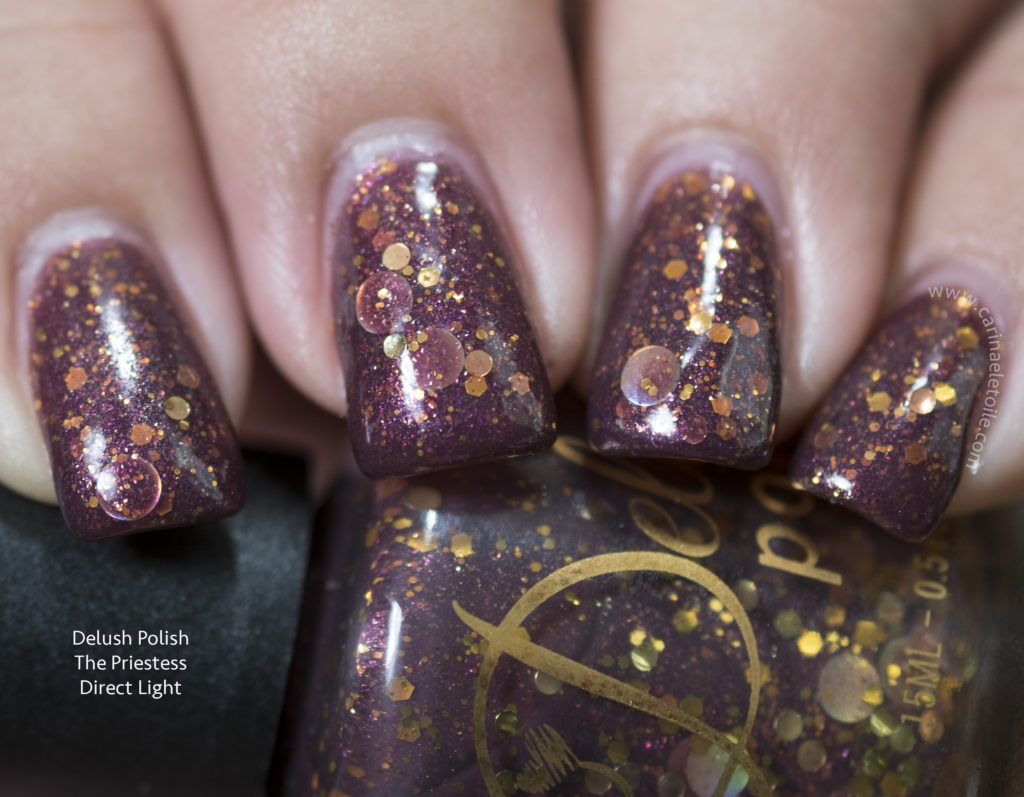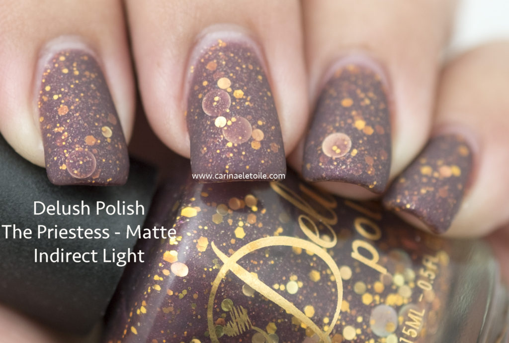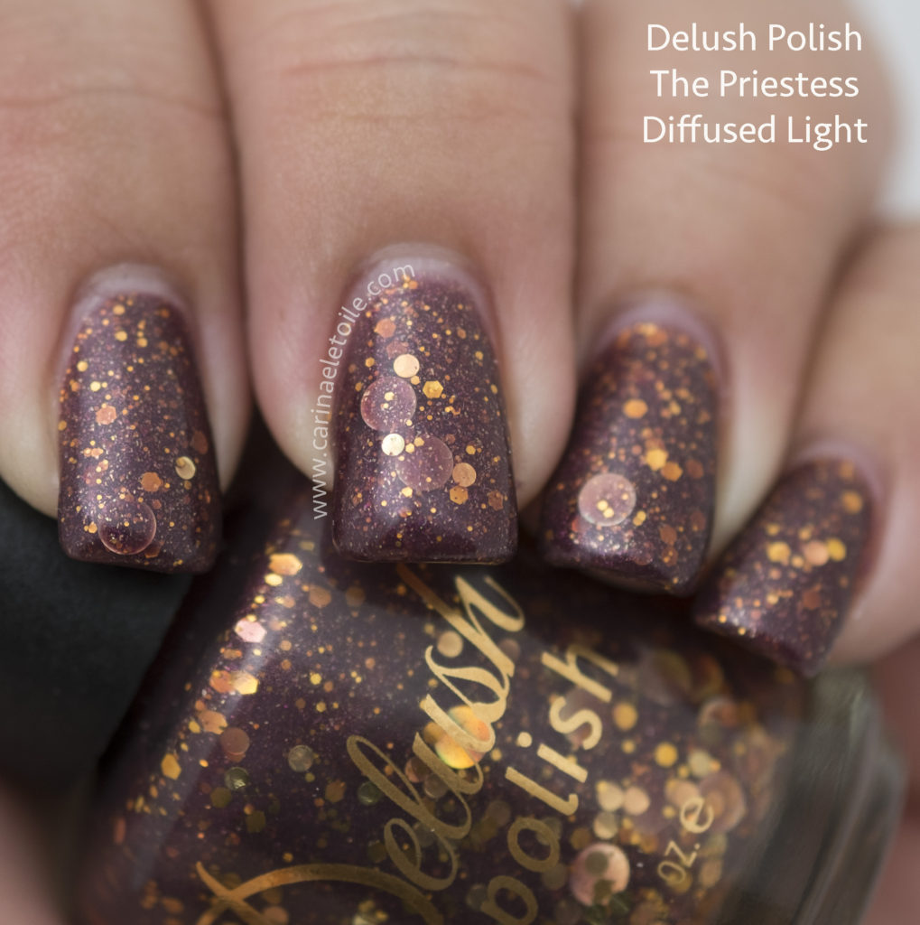 When I first came across Delush Polish The Priestess in the collection, I overlooked it. The light wasn’t hitting it right and it looked like this dull, purple/brown polish that didn’t seem appealing in the slightest. Then one day months later, I was looking at the polish again, with clear, good light. Goodness! How on earth did I not let this beauty ever grace my nails?