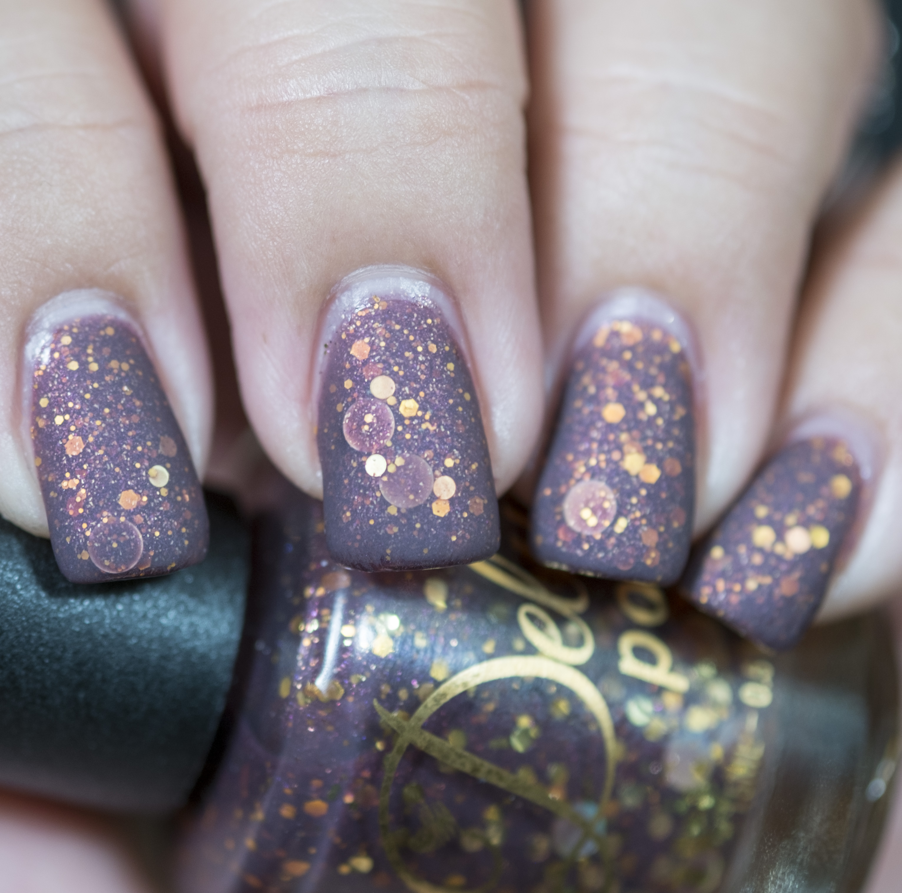 Taken from Delush Polish’s Facebook’s Store page, “A deep, vampy maroon jelly with an alluring blend of holographic gold glitters, large dots and a dusting of glistening flakies that is sure to lure you in.”