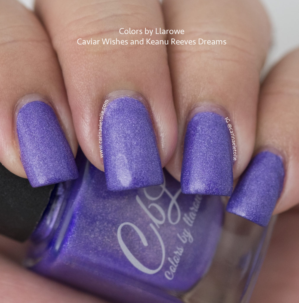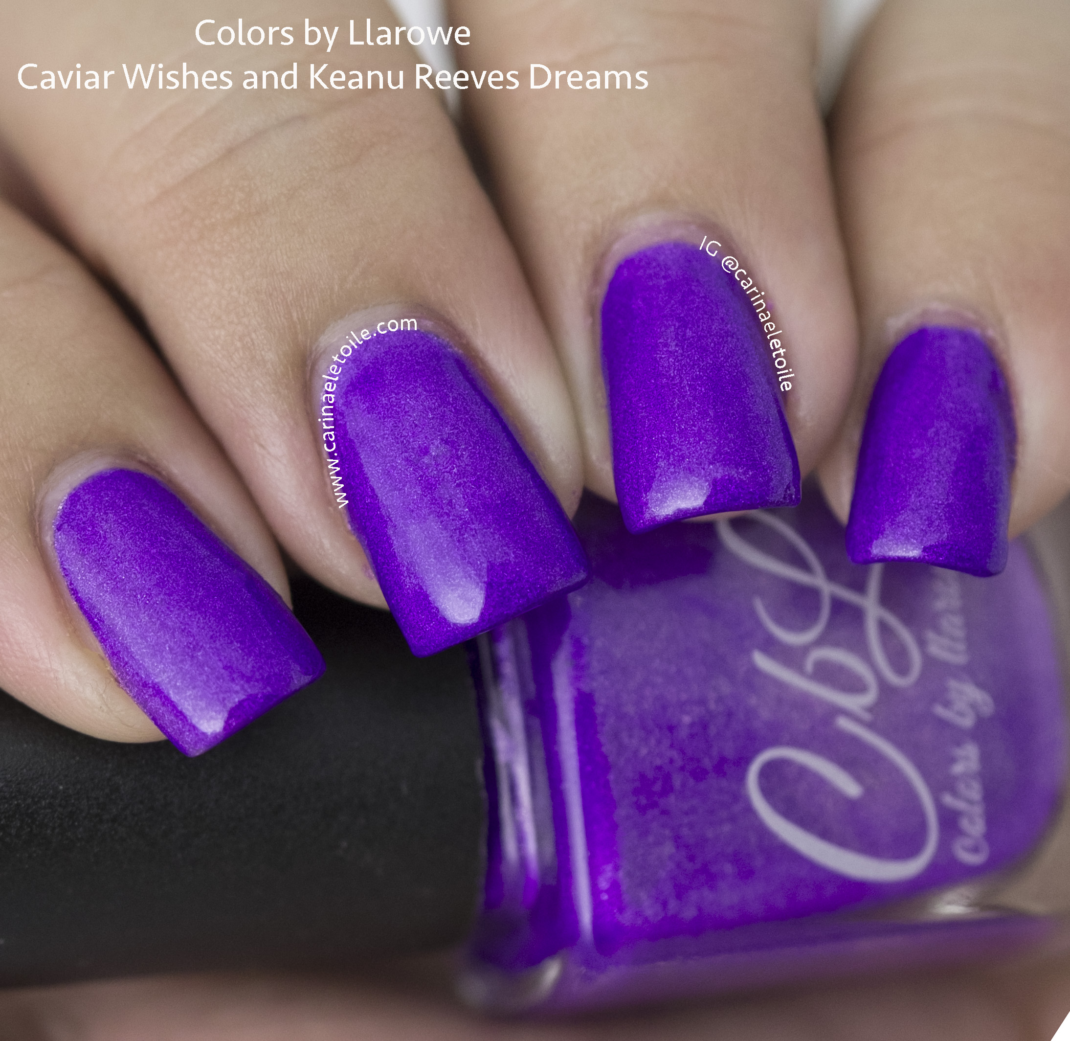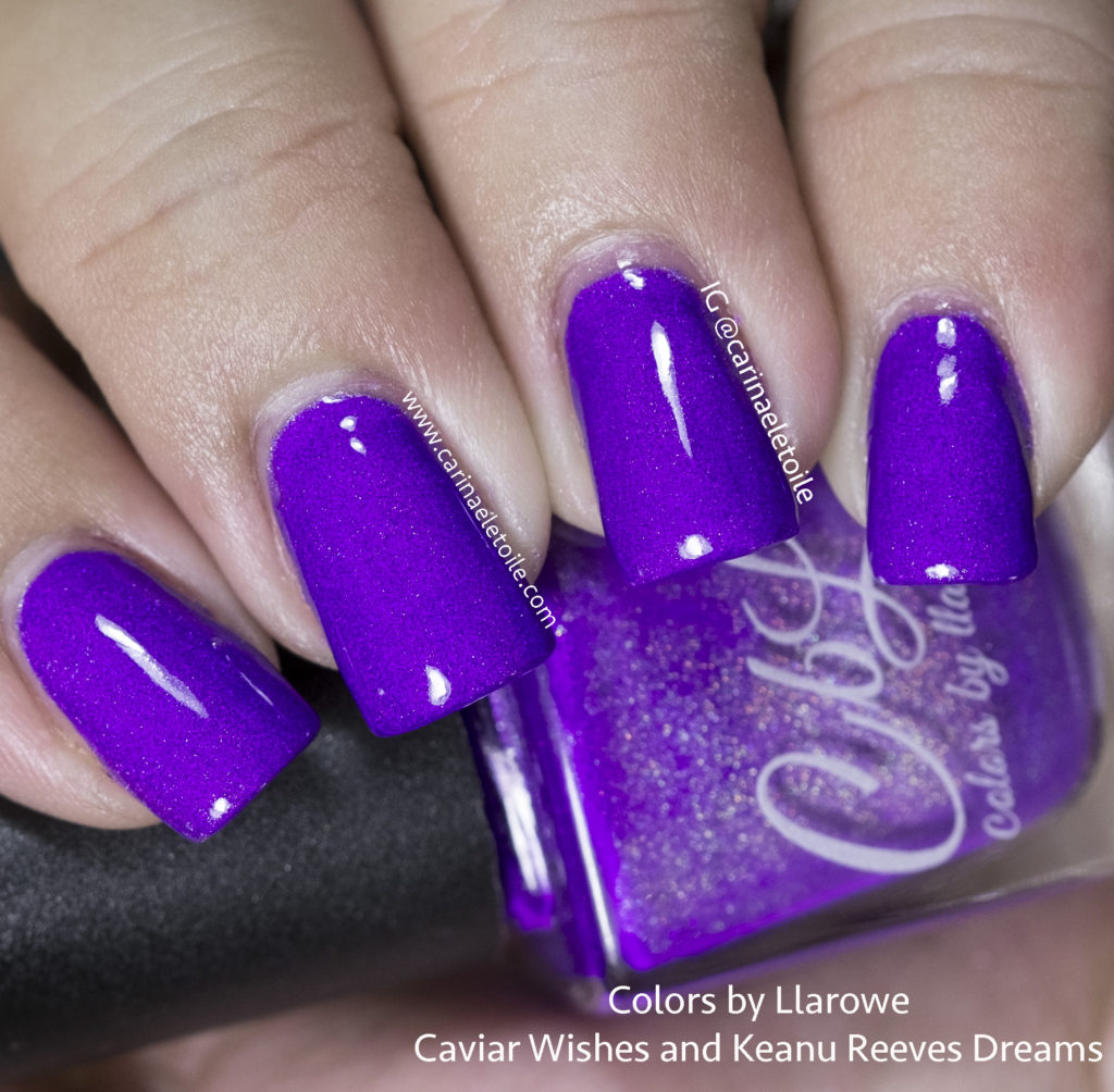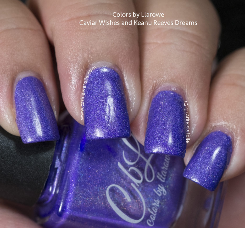 First off, when applied, Colors by Llarowe Caviar Wishes and Keanu Reeves Dreams appears to be slightly matte and has a very faint scattered holo. You can see what I mean in the two pictures below. The pictures below is Colors by Llarowe Caviar Wishes and Keanu Reeves Dreams without topcoat.