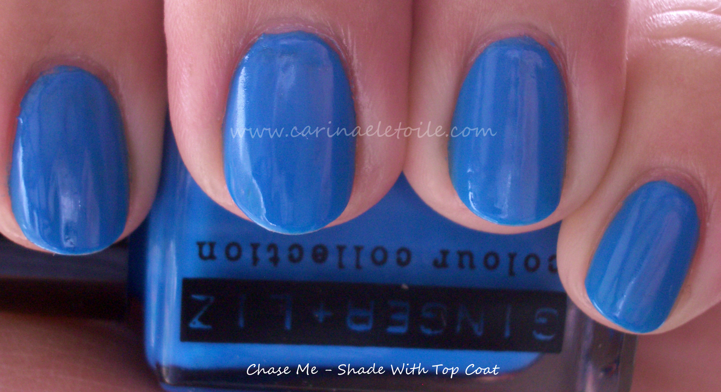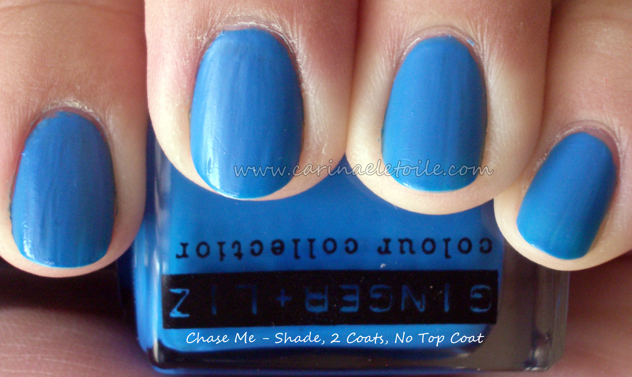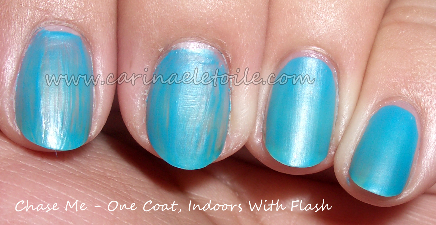 Views with and without top coat; 2 applications of the color.