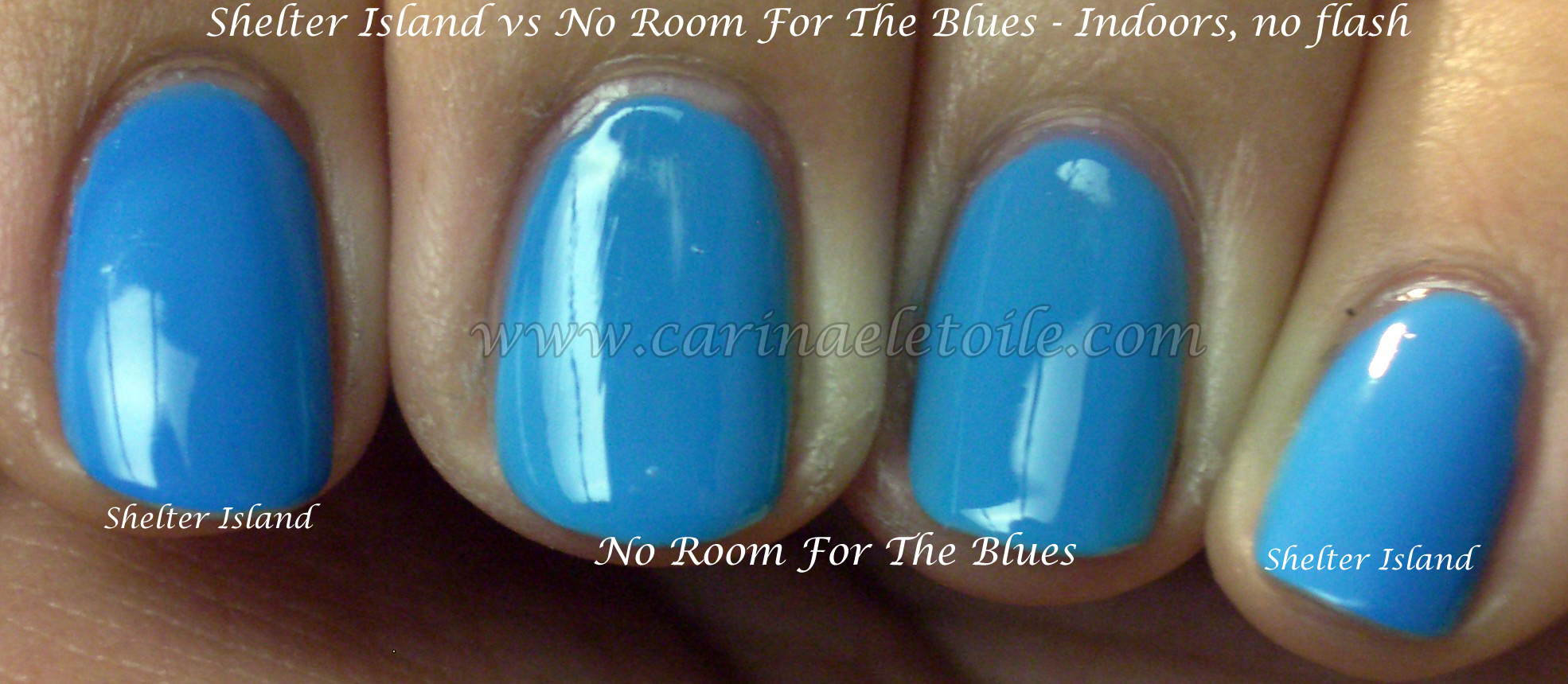 Out of these two, I really love Shelter Island the best. I wear it whenever I can. However, you can’t really see the very subtle difference between the two here.
